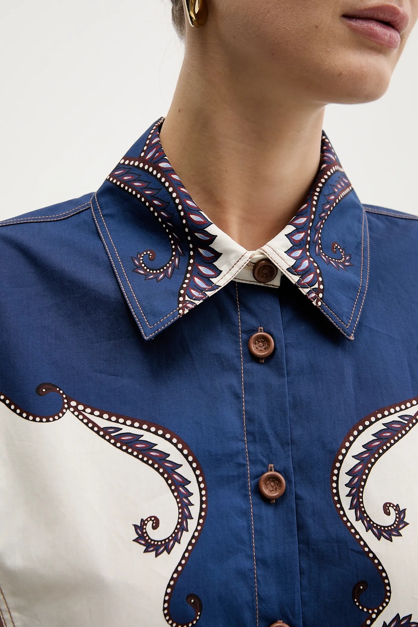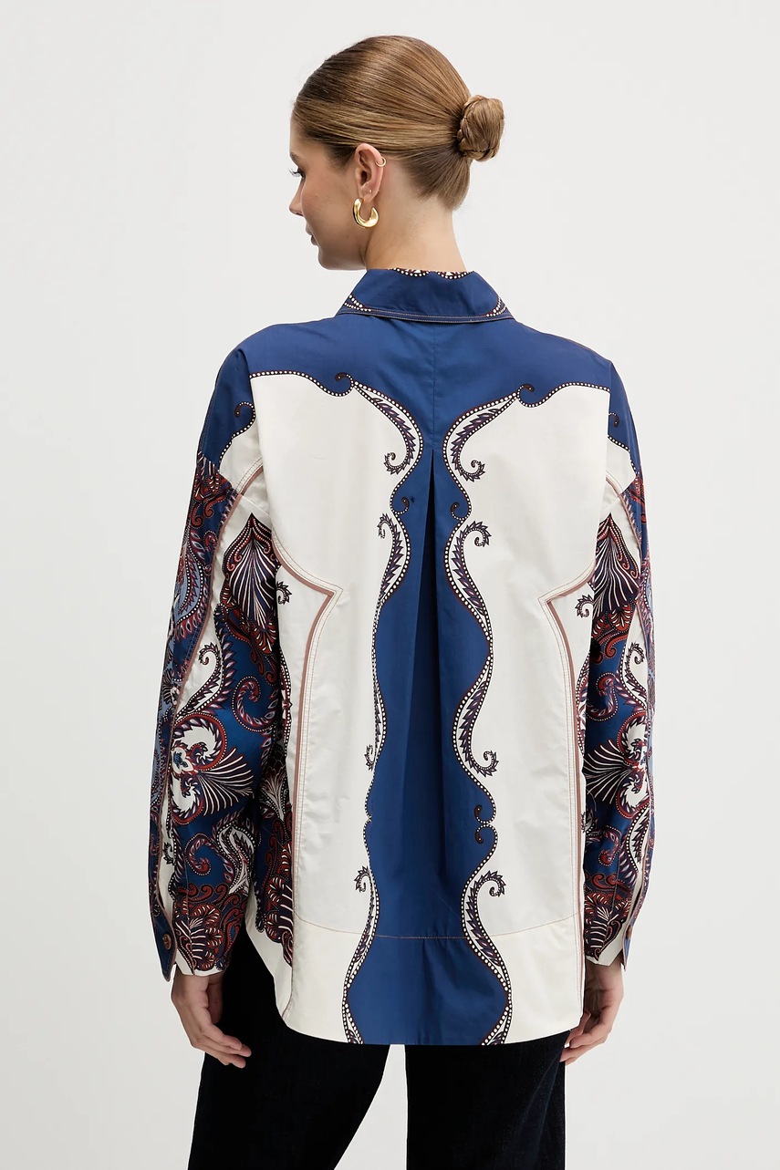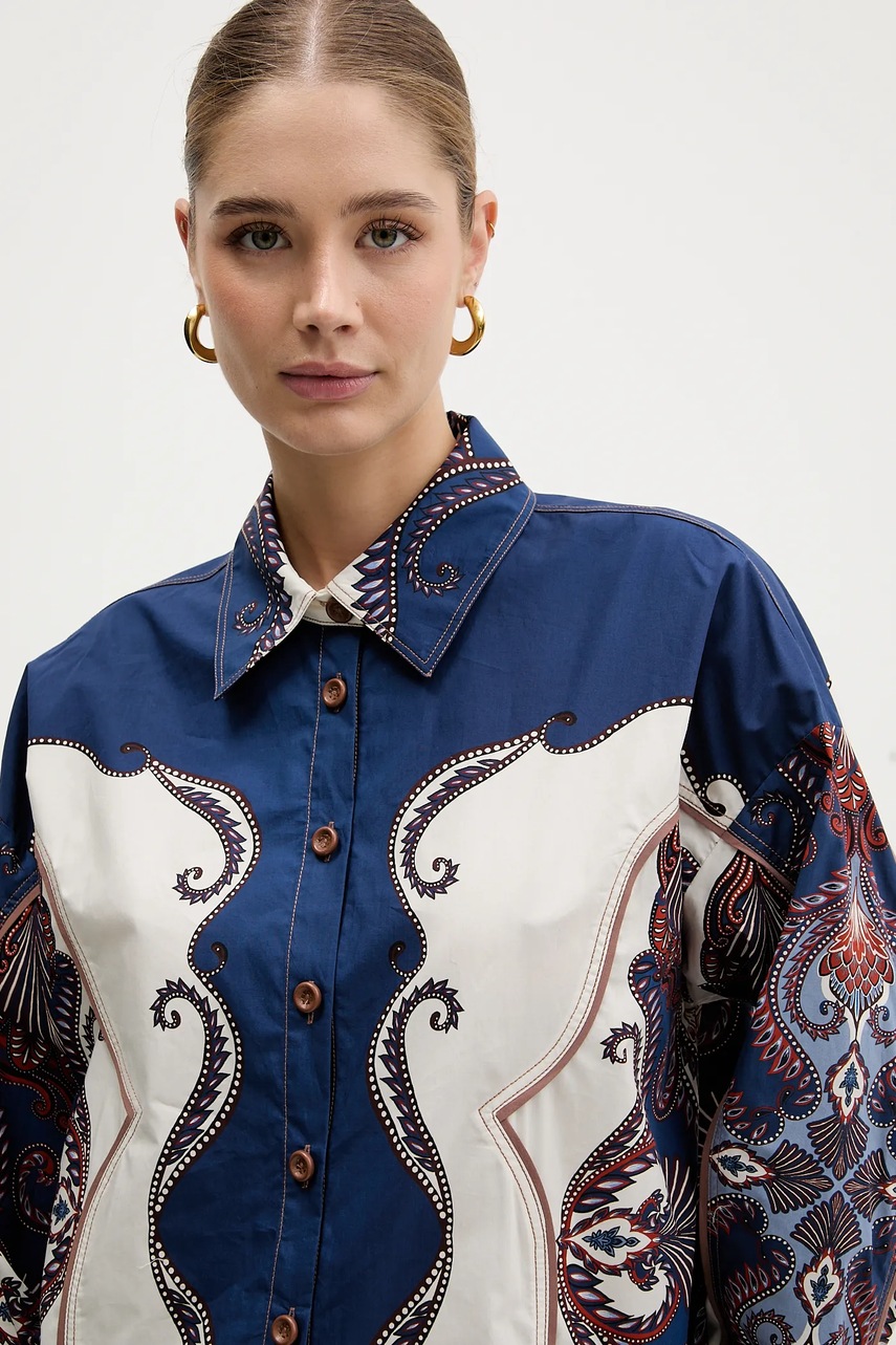 Farm Rio koszula bawełniana damska kolor niebieski relaxed z kołnierzykiem klasycznym 344003