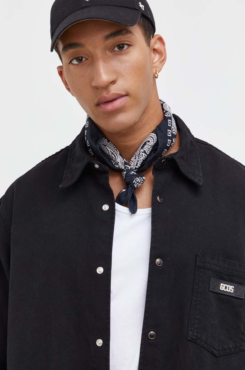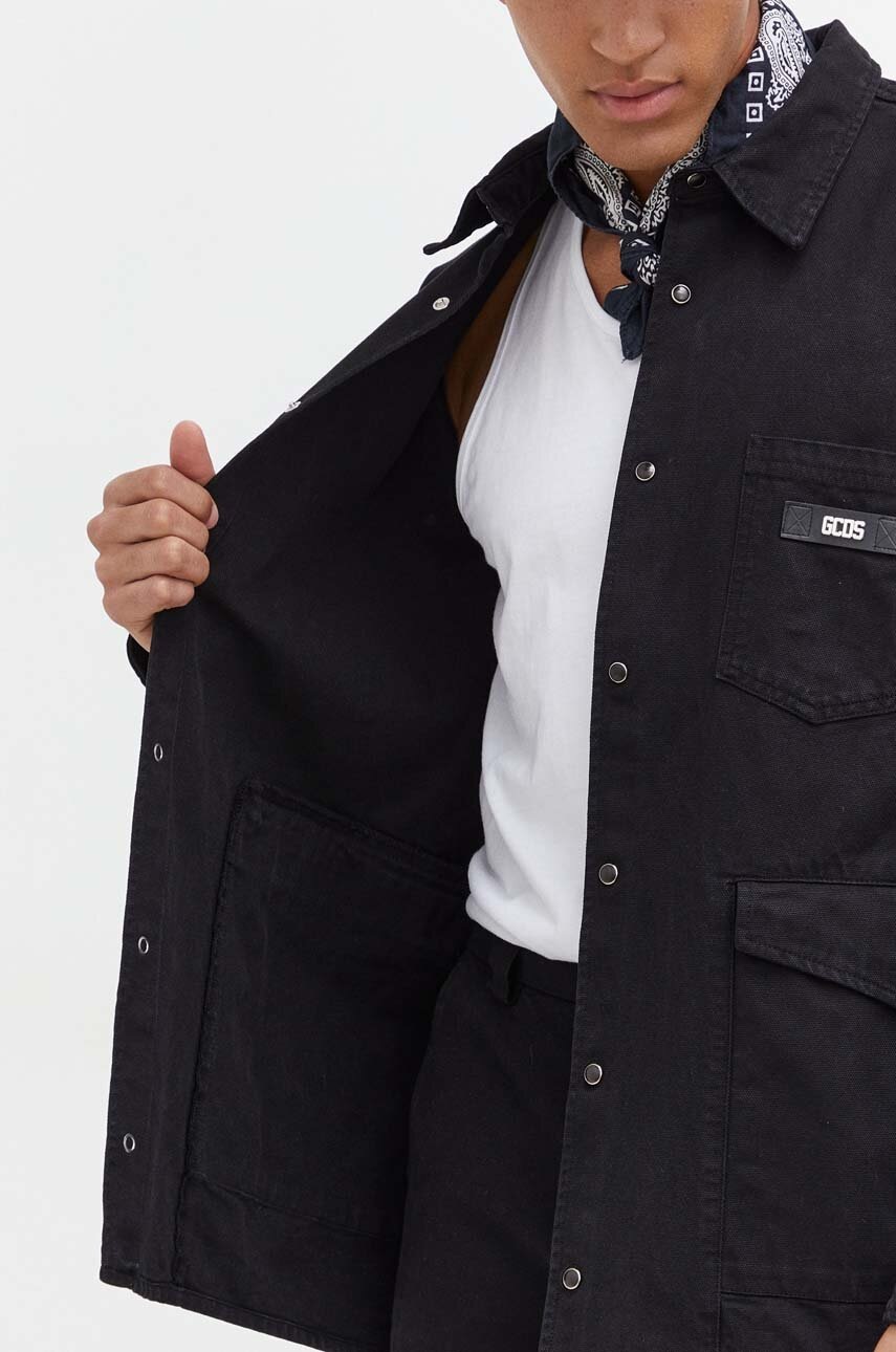 GCDS koszula bawełniana męska kolor czarny relaxed z kołnierzykiem klasycznym