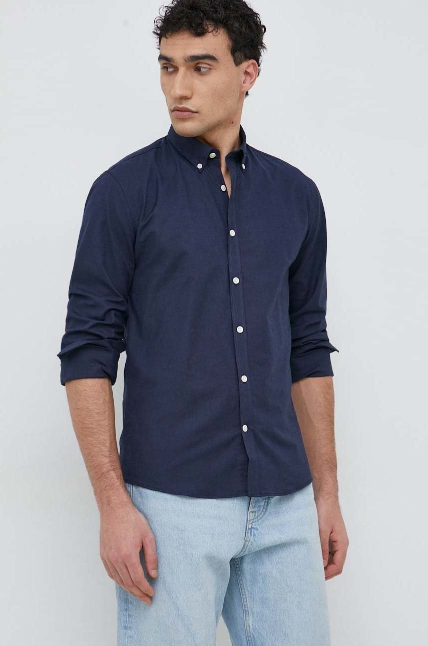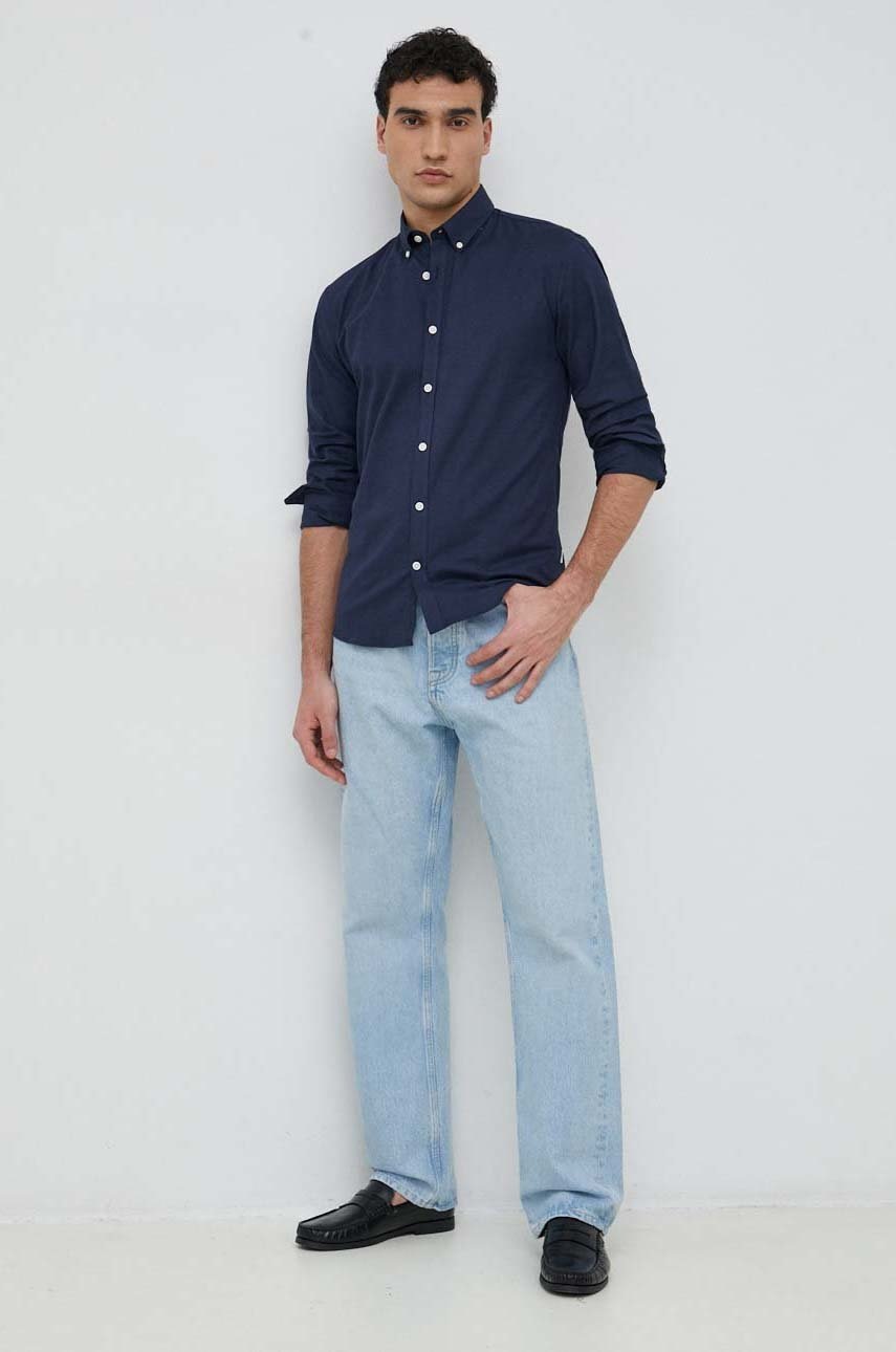 Lindbergh koszula męska kolor granatowy slim z kołnierzykiem button-down
