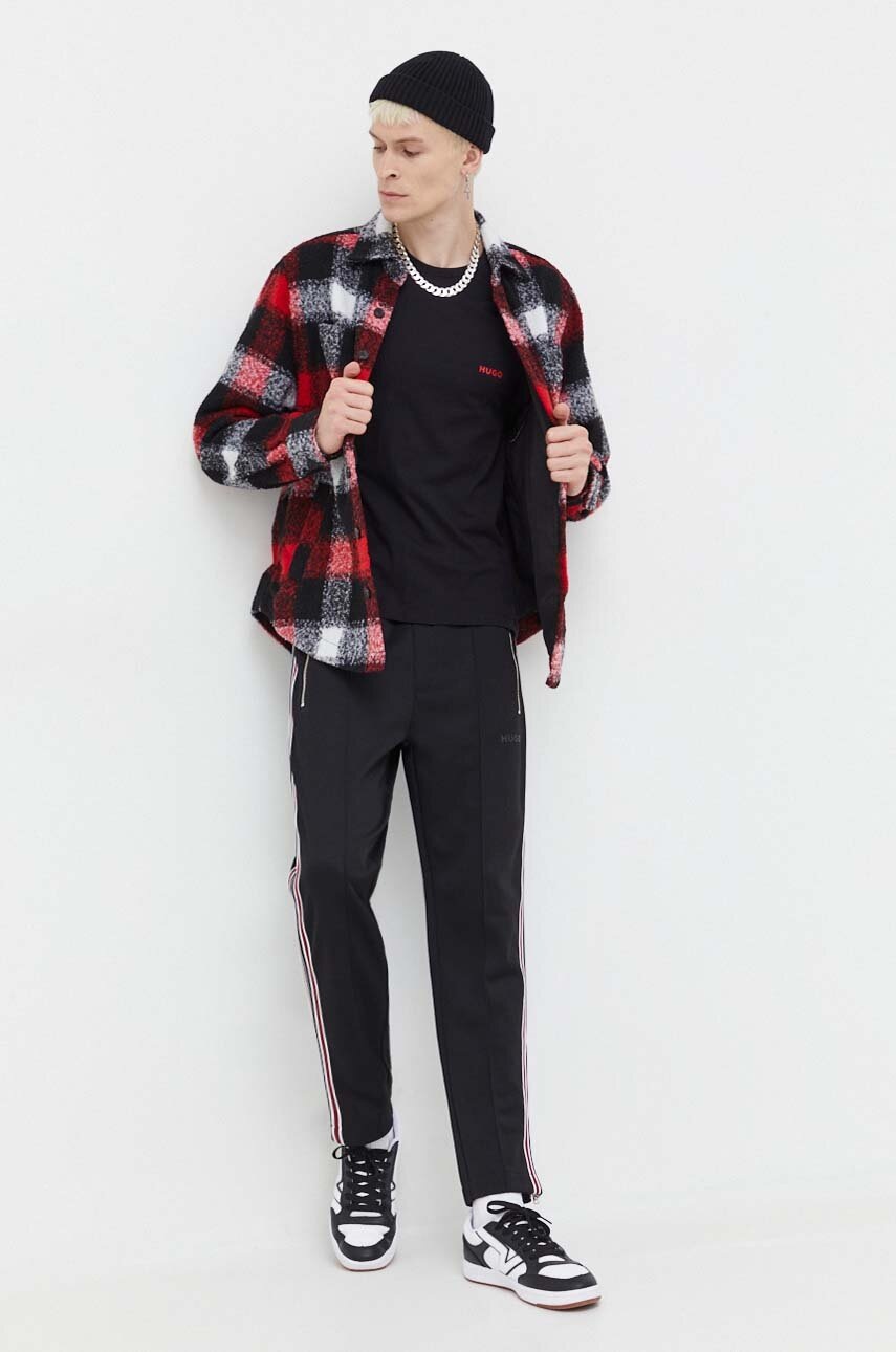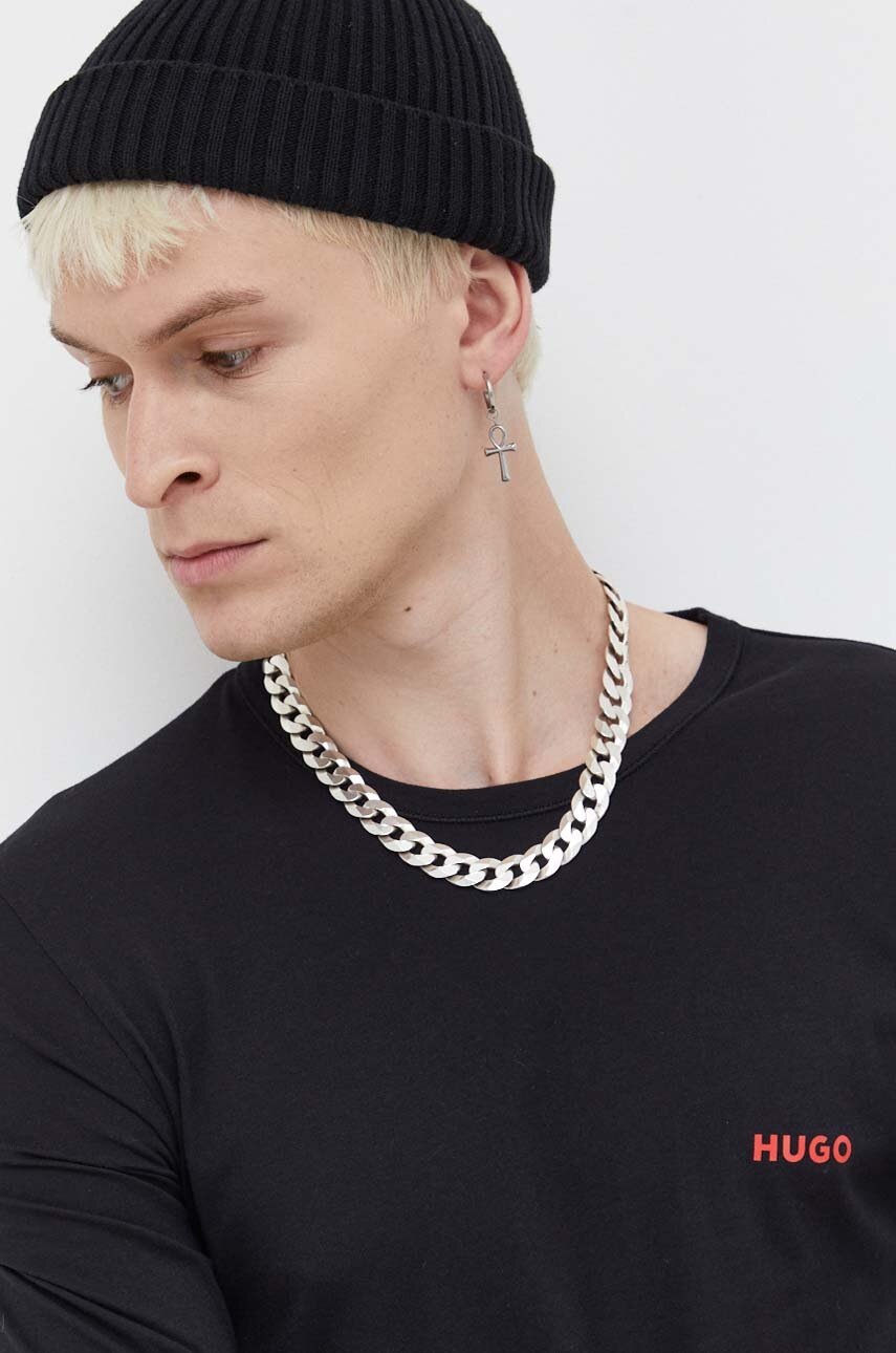 HUGO longsleeve bawełniany lounge 3-pack kolor czarny z nadrukiem