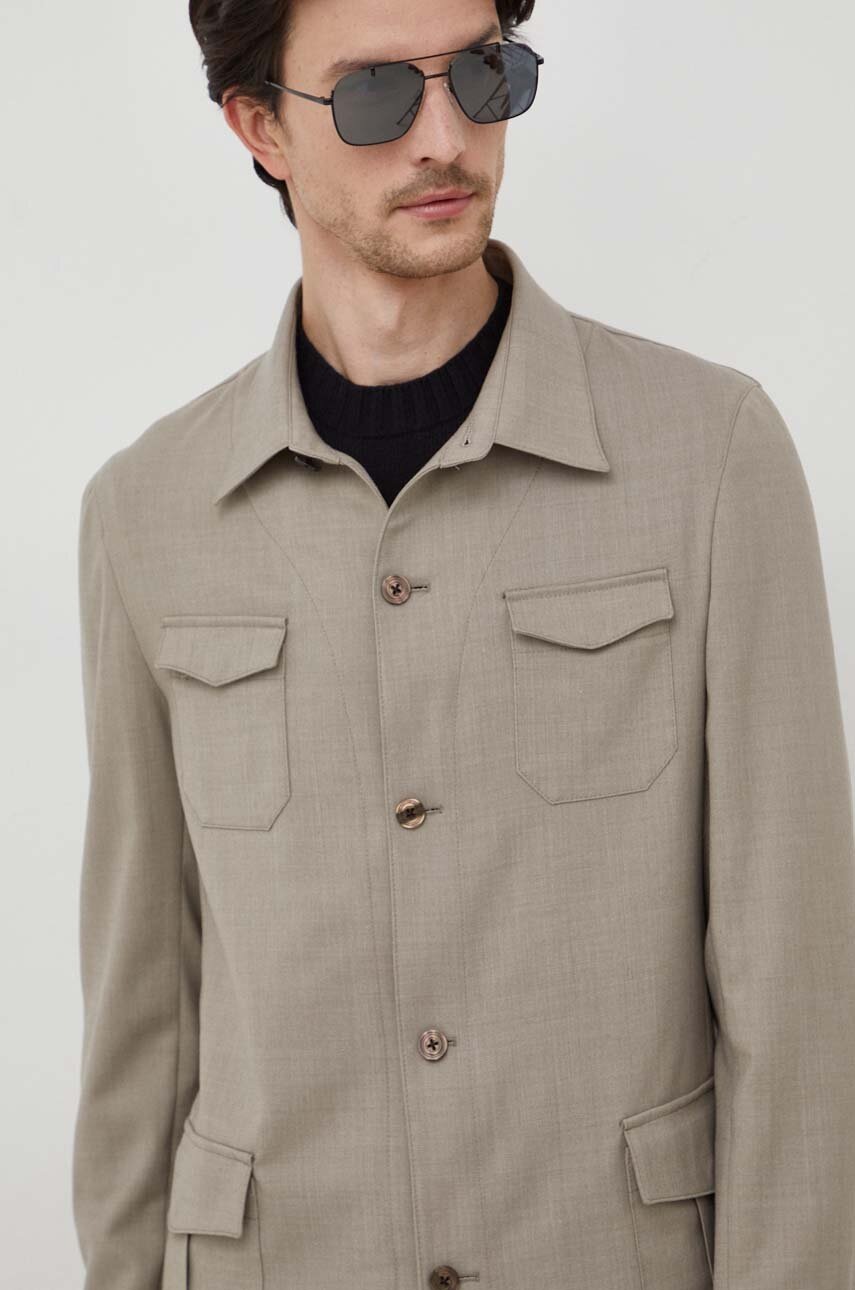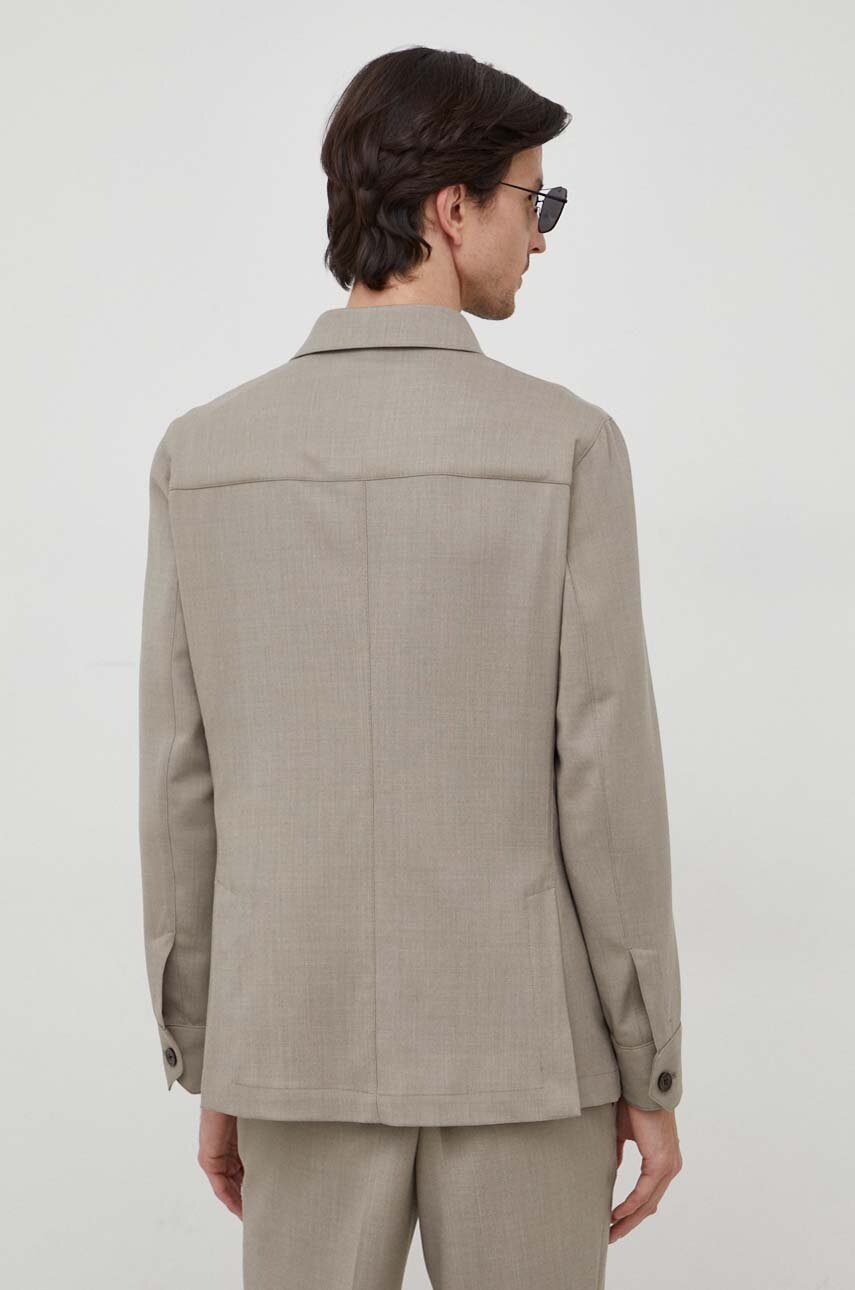 Michael Kors koszula wełniana kolor beżowy regular z kołnierzykiem klasycznym