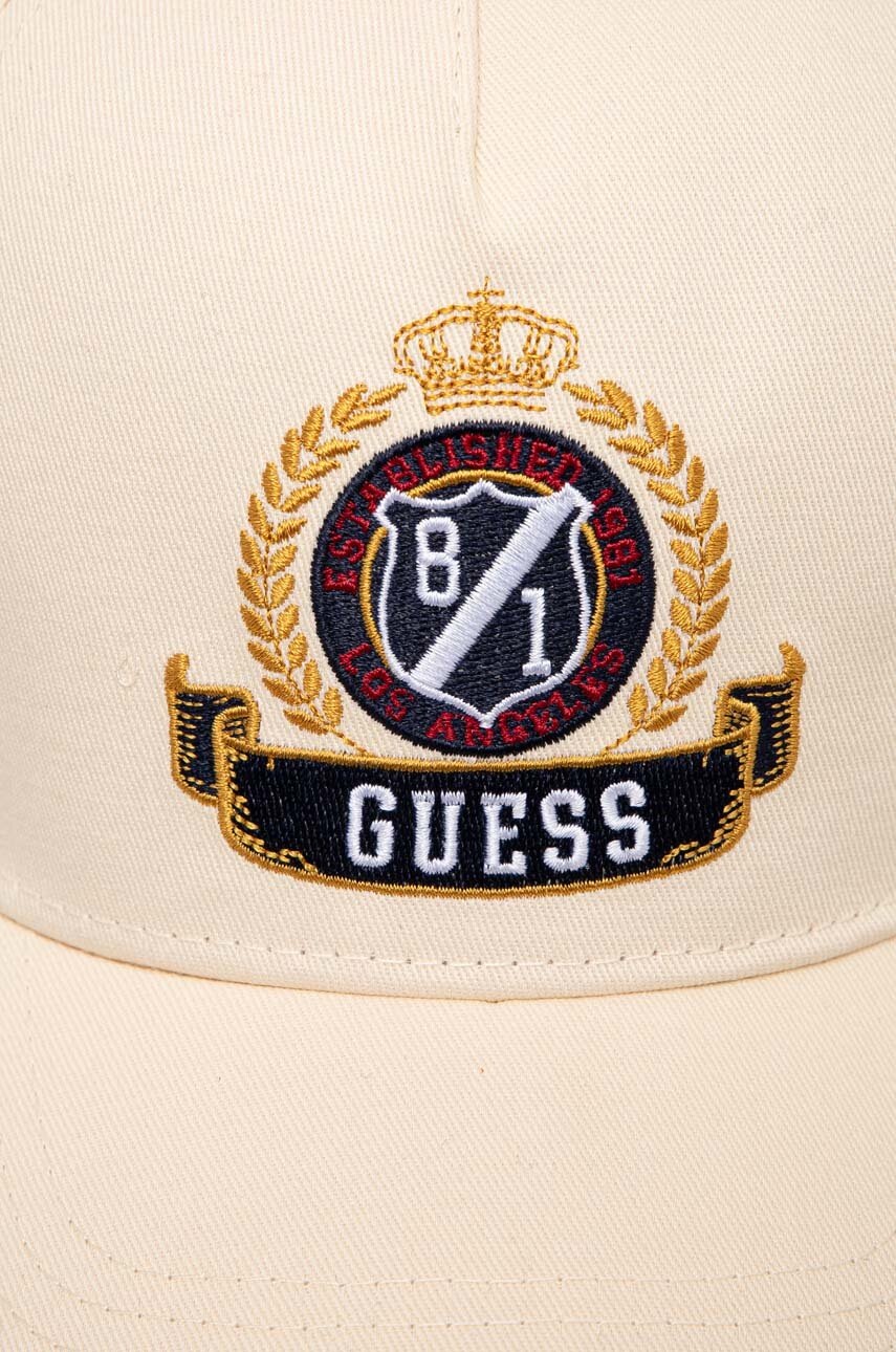 Guess czapka z daszkiem bawełniana kolor beżowy z aplikacją
