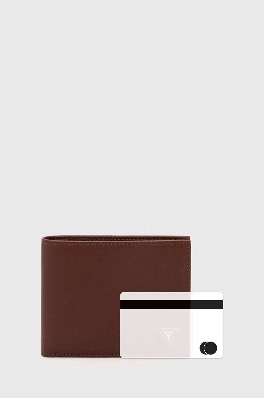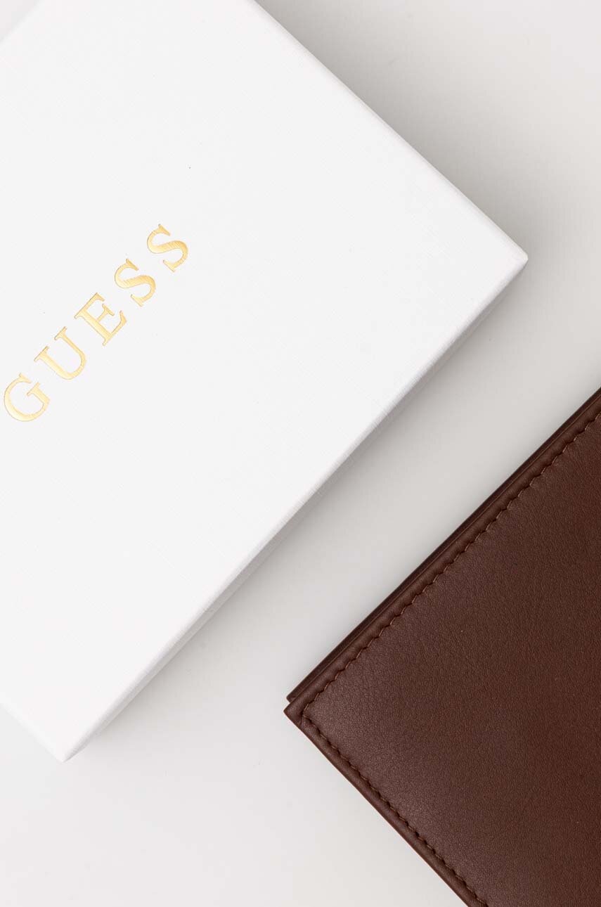 Guess portfel skórzany męski kolor brązowy