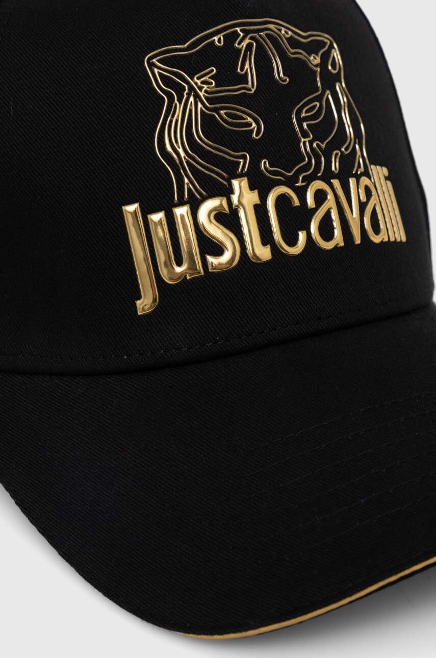 Just Cavalli czapka z daszkiem bawełniana kolor czarny z aplikacją