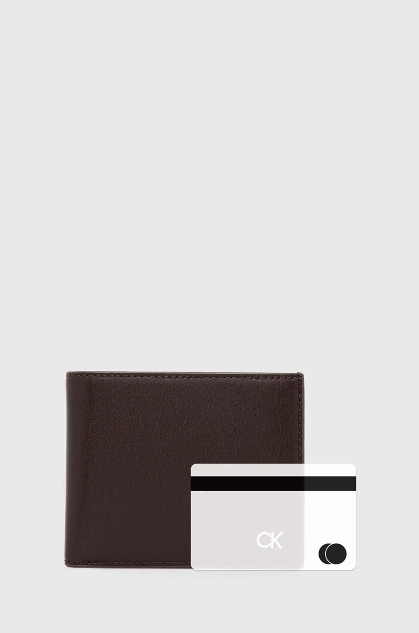 Calvin Klein portfel skórzany męski kolor brązowy