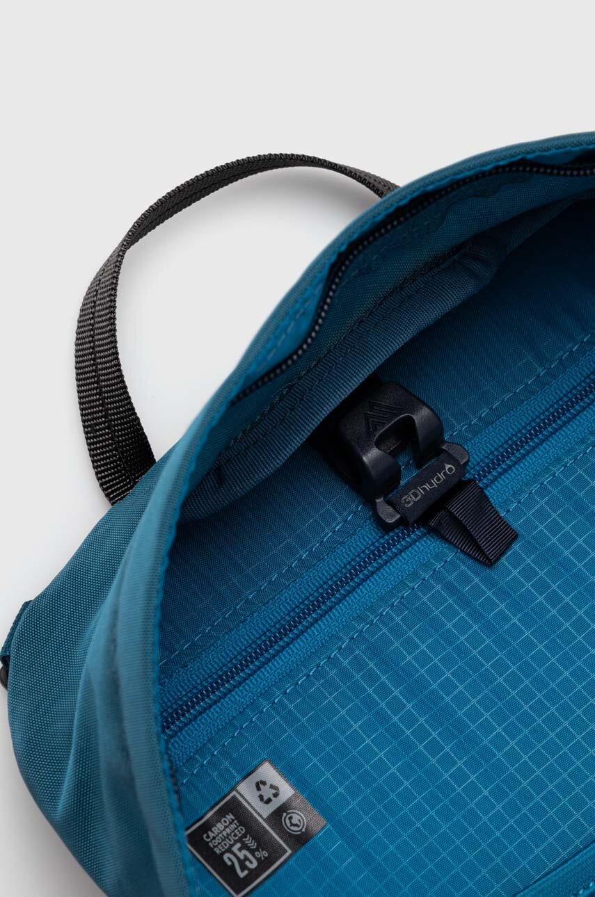 - Zapinana kieszeń u góry plecaka, pozwala na bezpieczne przechowywanie przedmiotów takich jak telefon, klucze czy karta bankowa i zapewnia do nich łatwy dostęp.