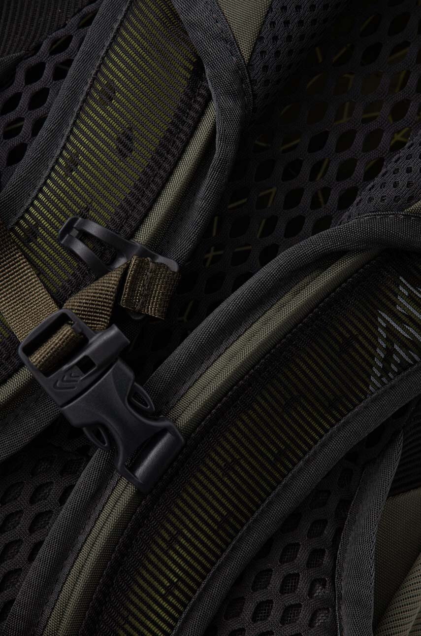- Miękko wyściełane pasy ramiennie, wykończone siateczkowym materiałem, zapewniają odpowiednią oddychalność i amortyzację ciężaru.