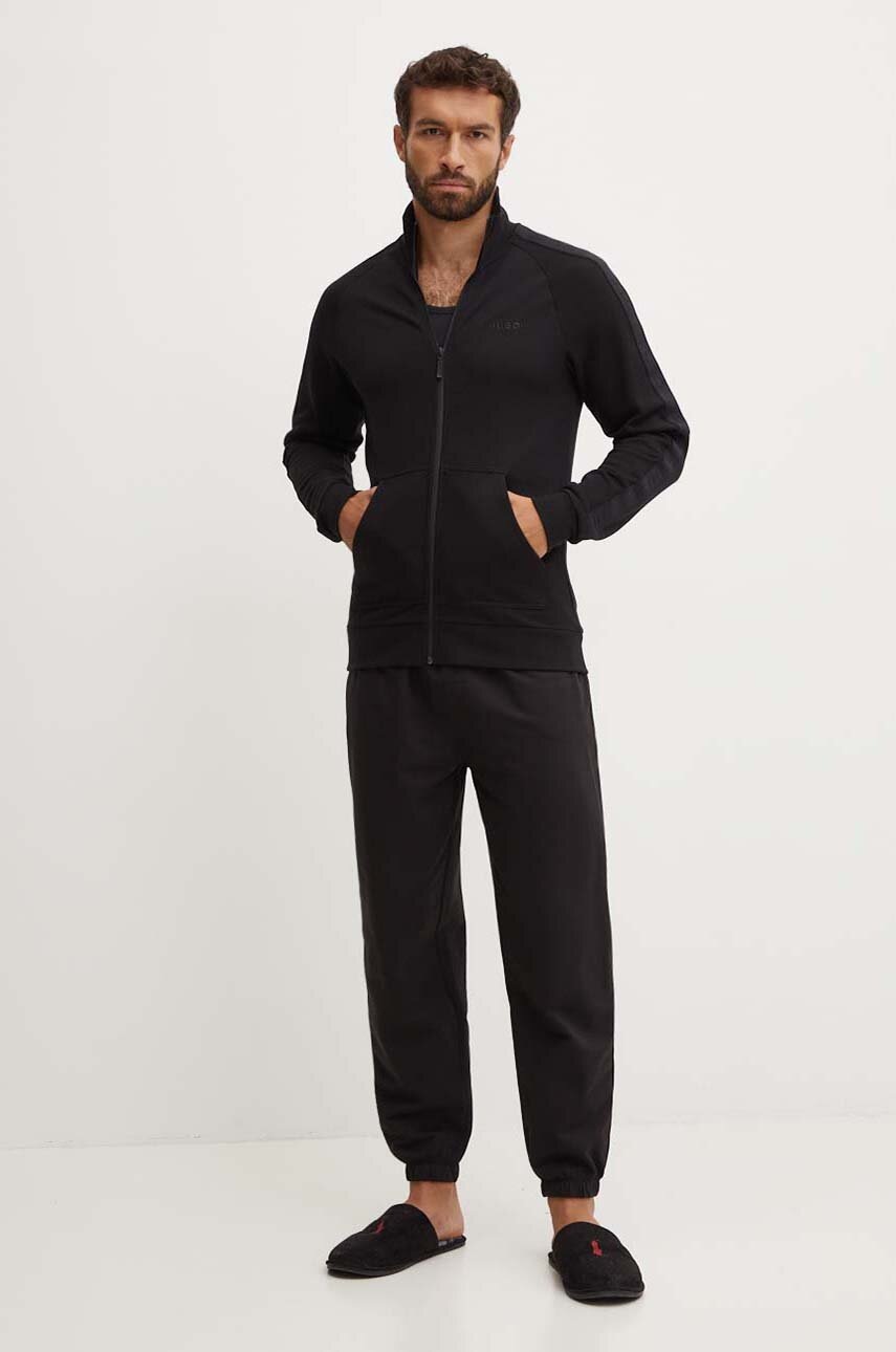 HUGO bluza bawełniana lounge kolor czarny z aplikacją 50520493