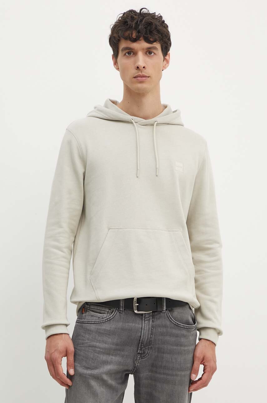 Boss Orange bluza bawełniana męska kolor beżowy z kapturem gładka 50509314