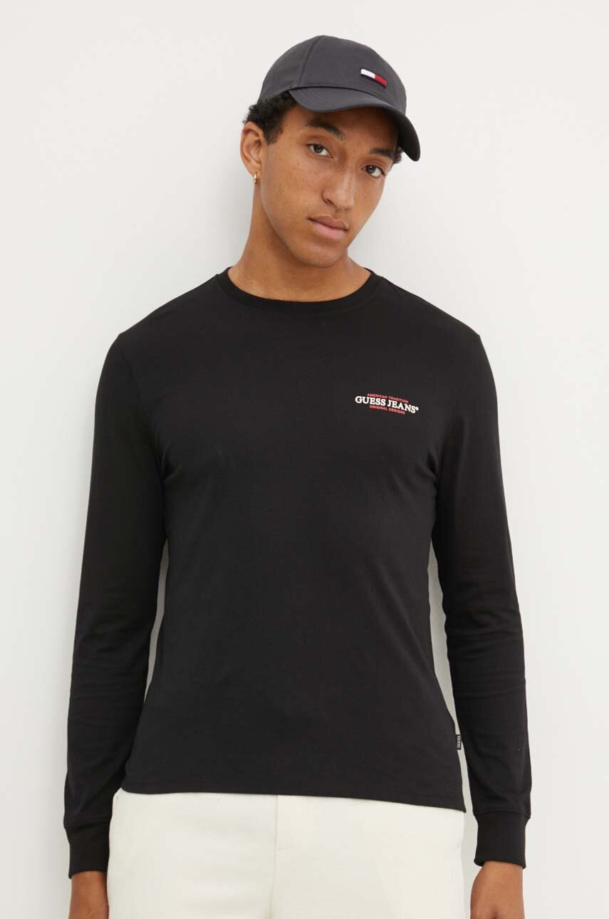 Guess Jeans longsleeve bawełniany kolor czarny z nadrukiem M4YI54 K8HM0