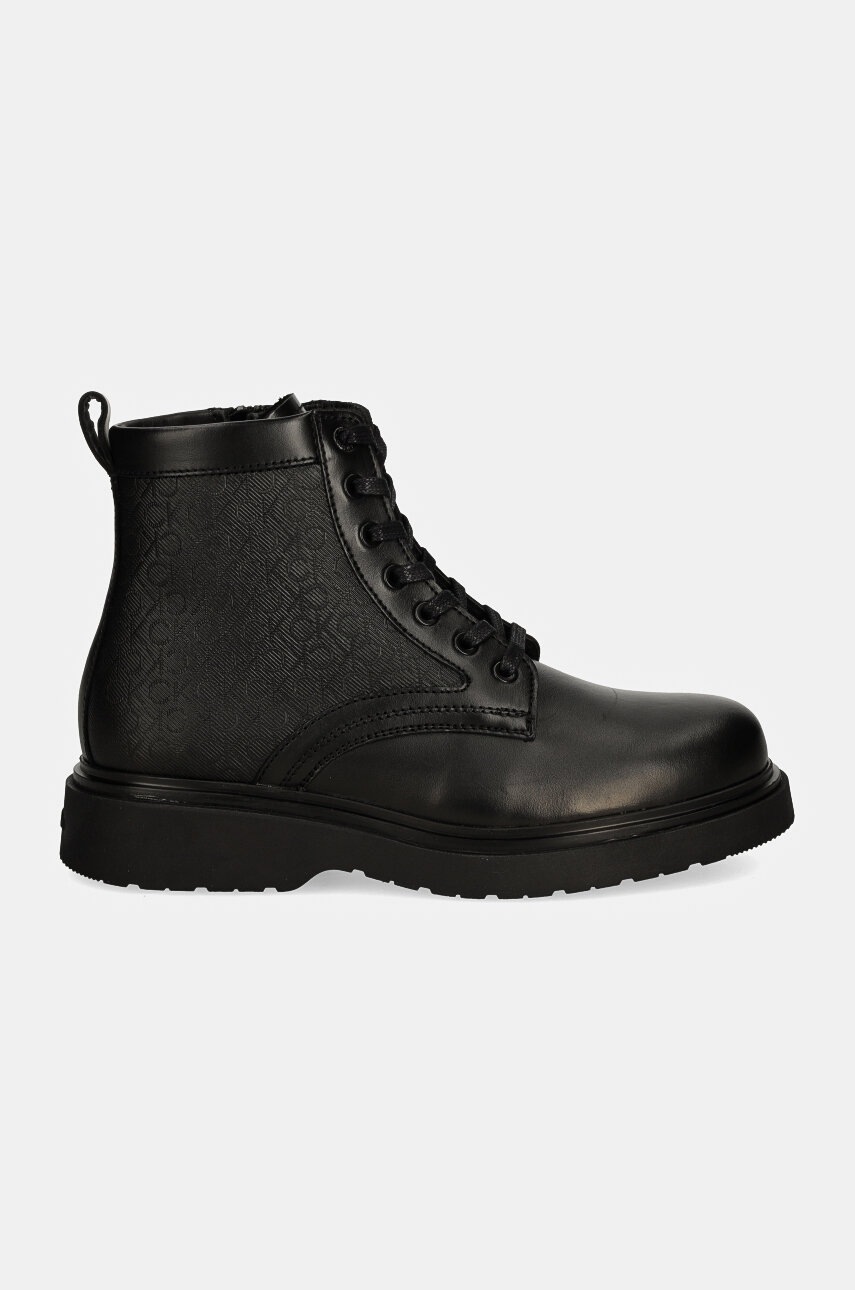 Calvin Klein trapery skórzane LACE UP BOOT W/ ZIP MONO męskie kolor czarny HM0HM01580