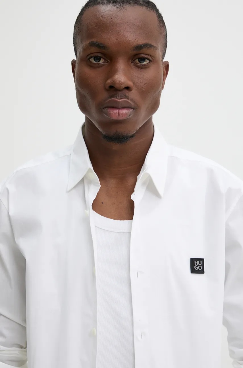 HUGO koszula męska kolor biały slim z kołnierzykiem klasycznym 50505315