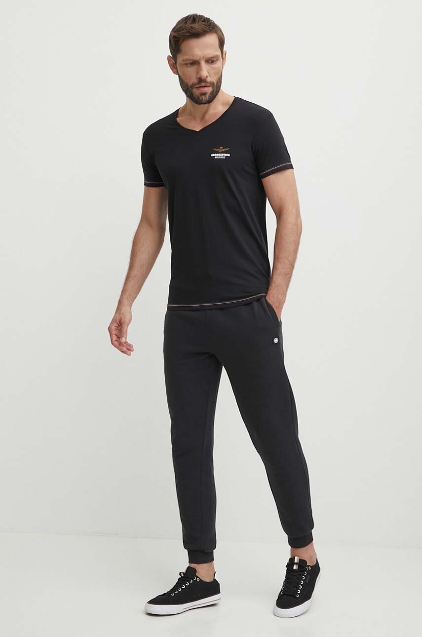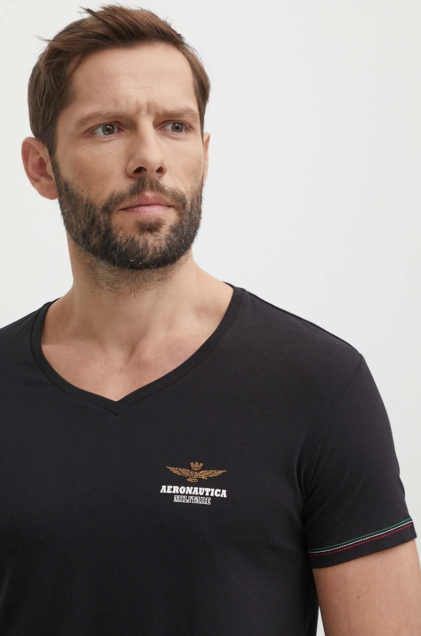 Aeronautica Militare t-shirt męski kolor czarny gładki AM1UTI004