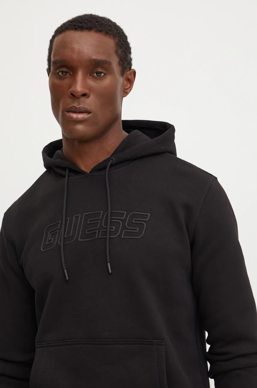 Guess bluza ALDWIN męska kolor czarny z kapturem gładka Z4YQ12 K9V31