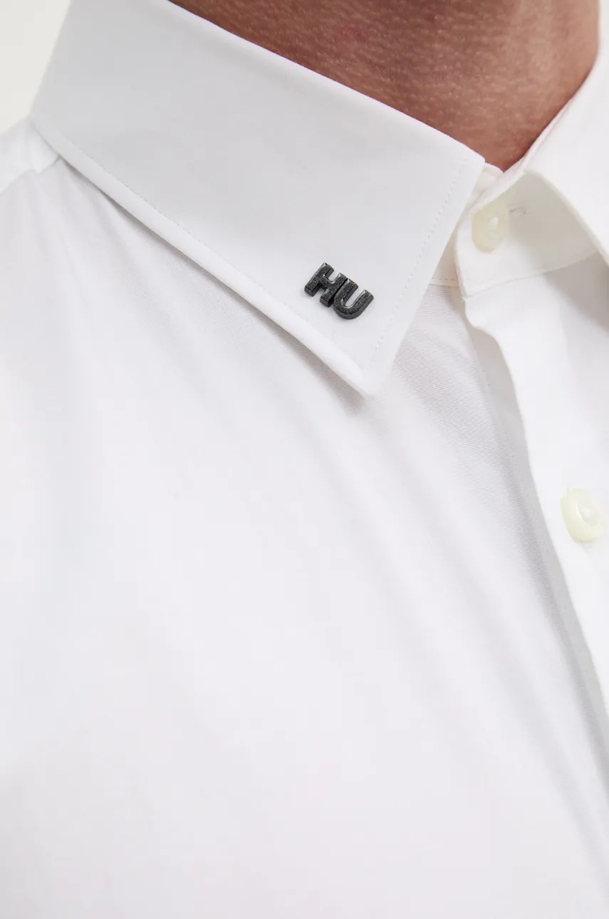 HUGO koszula męska kolor biały slim z kołnierzykiem klasycznym 50528474