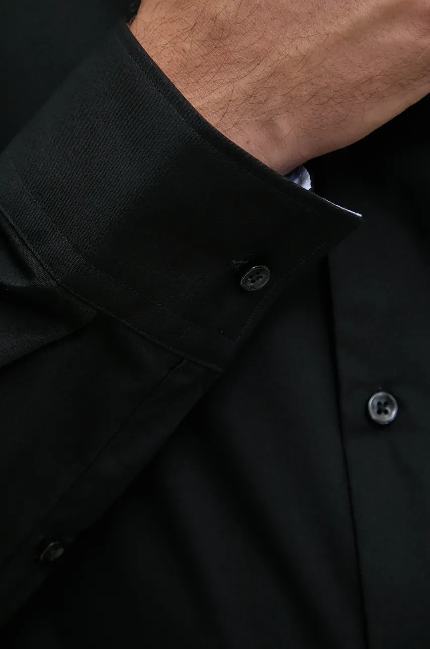 HUGO koszula bawełniana męska kolor czarny slim z kołnierzykiem włoskim 50524841