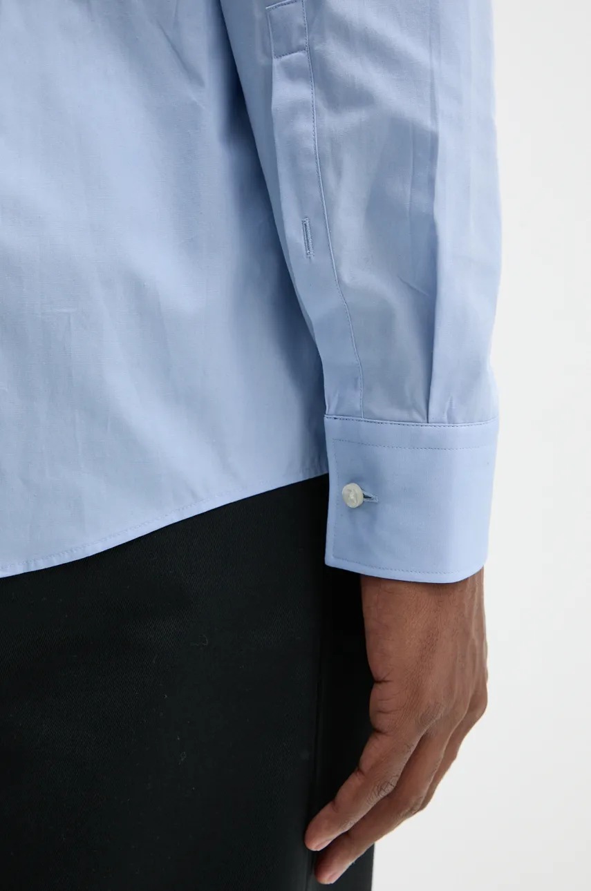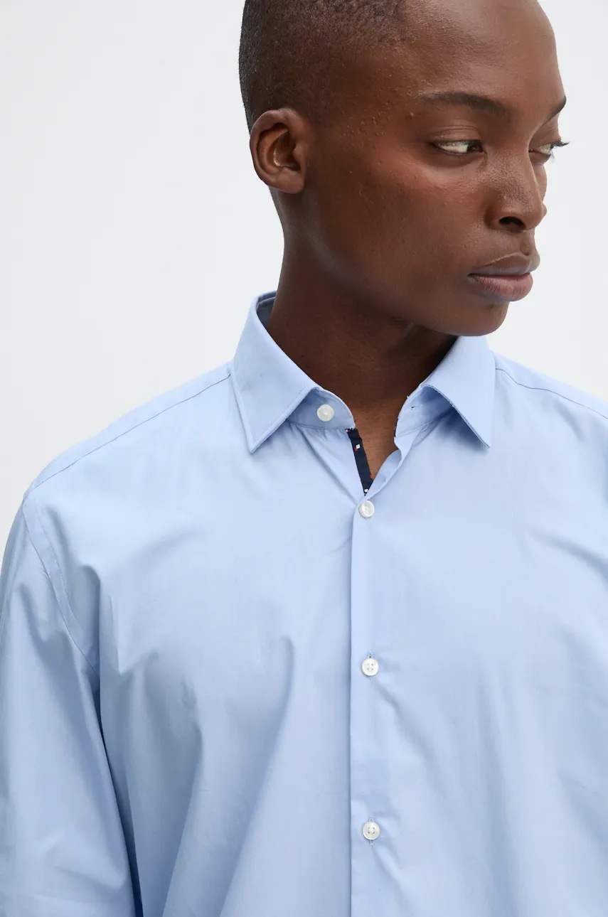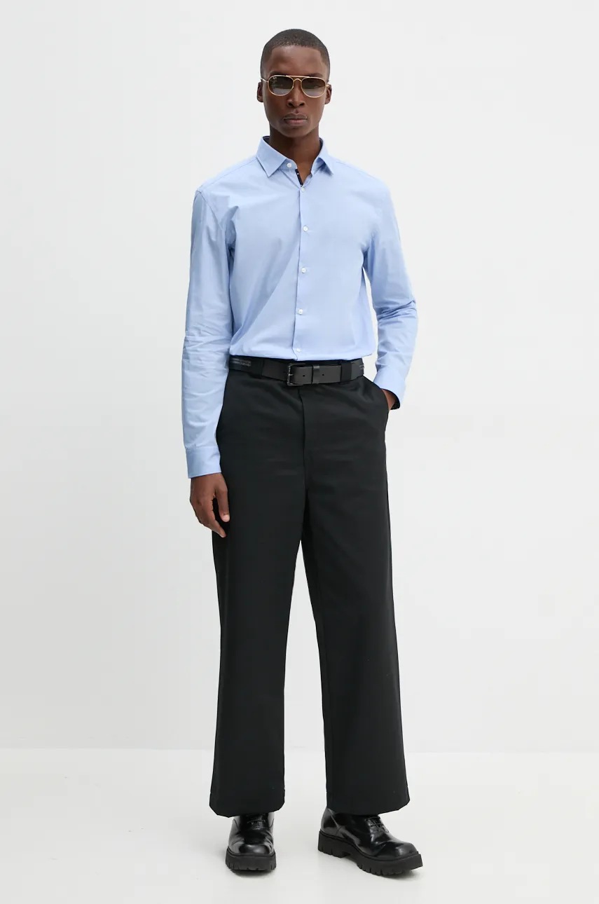 HUGO koszula bawełniana męska kolor niebieski slim z kołnierzykiem włoskim 50524841