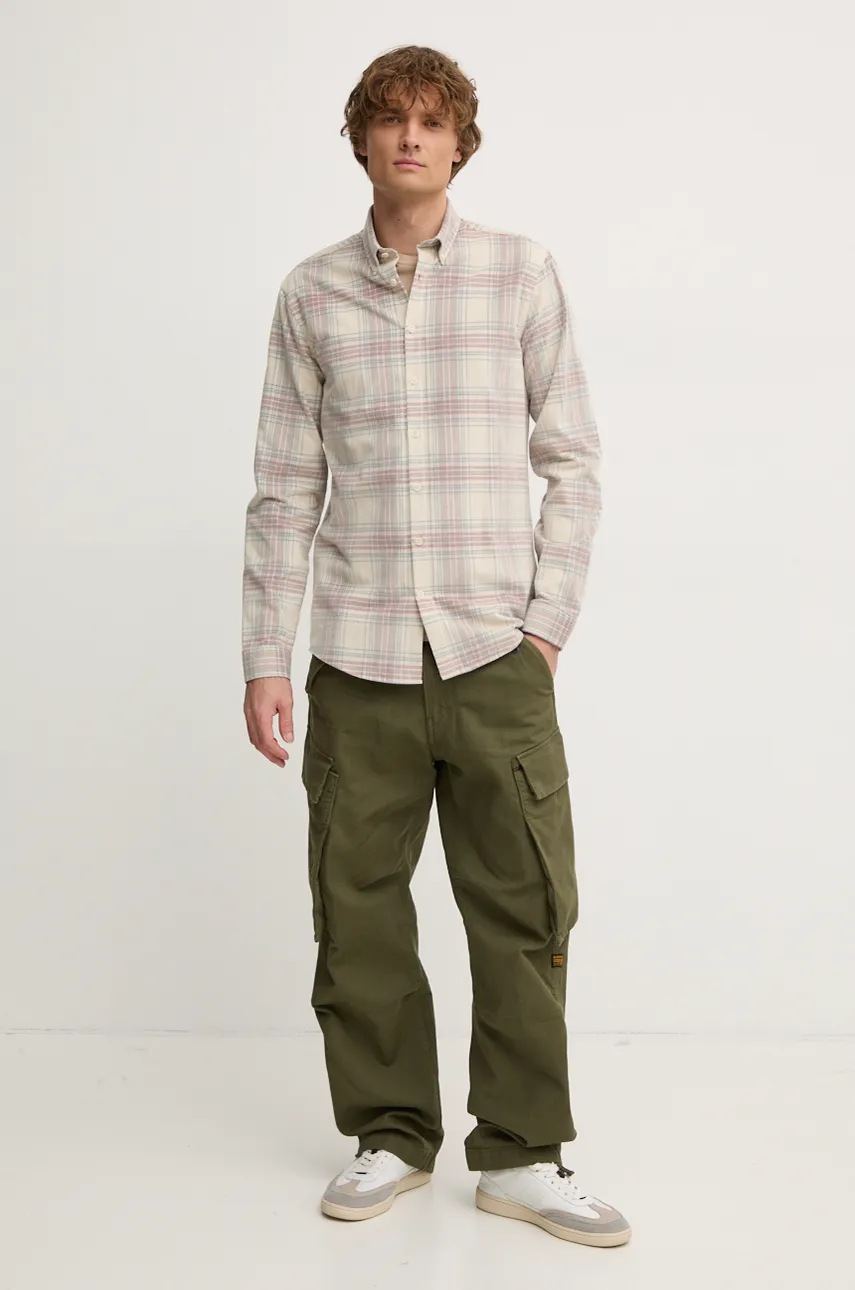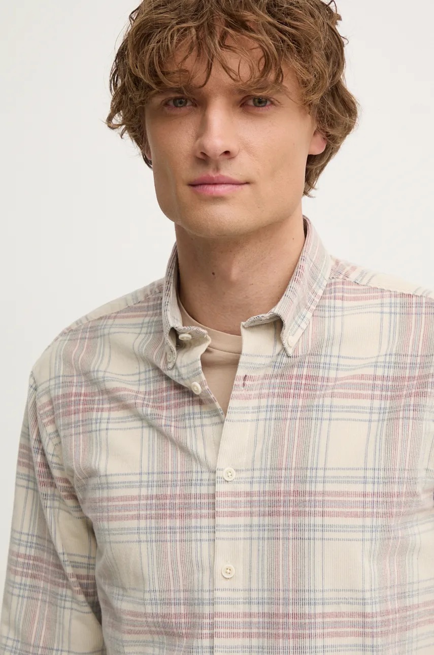 Lindbergh koszula sztruksowa kolor beżowy relaxed z kołnierzykiem button-down 30-203660