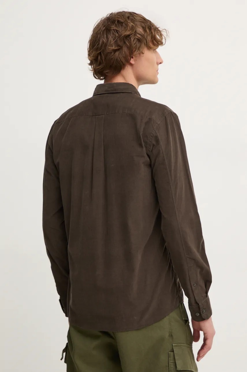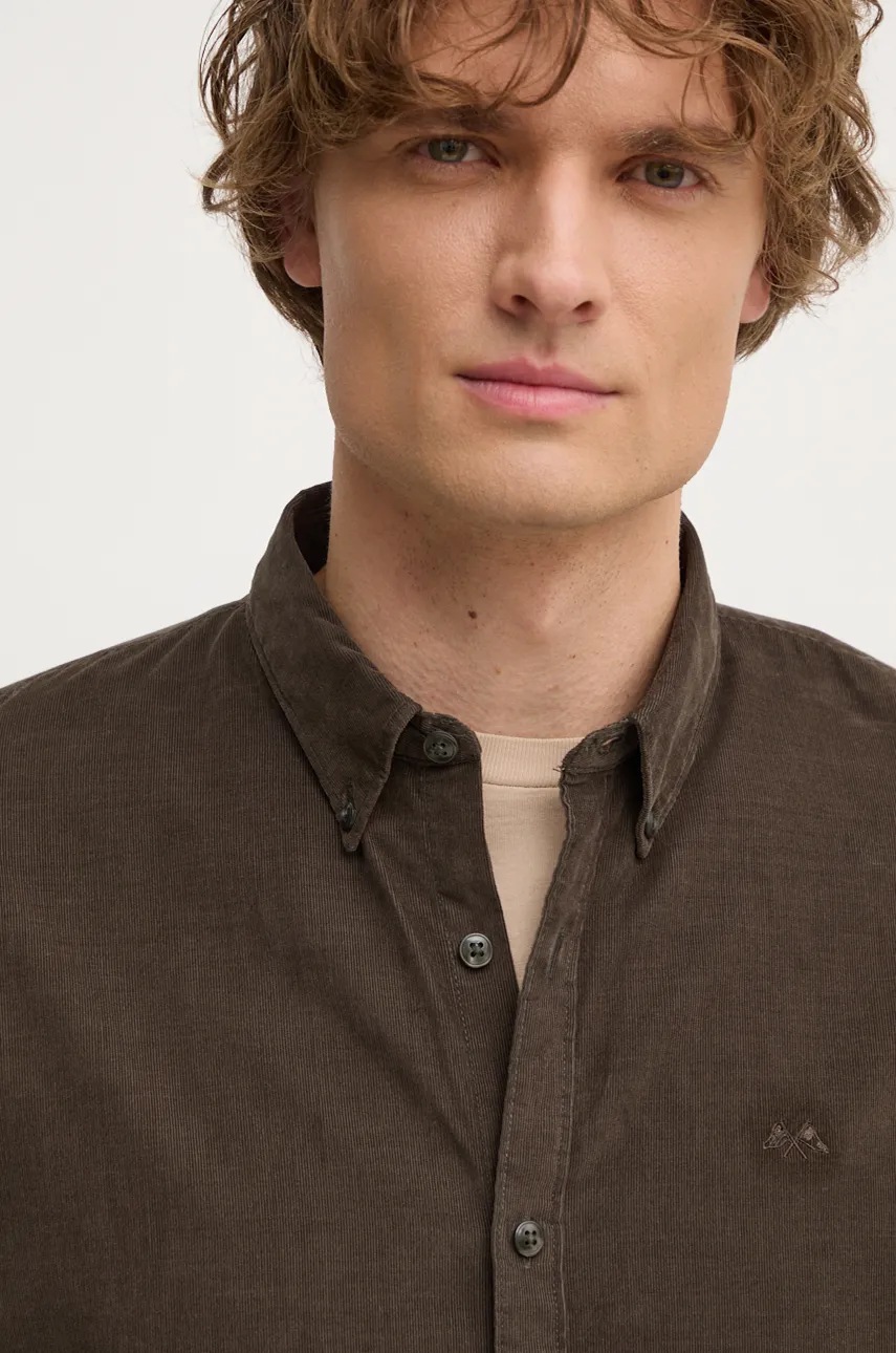 Lindbergh koszula sztruksowa kolor zielony regular z kołnierzykiem button-down 30-225016