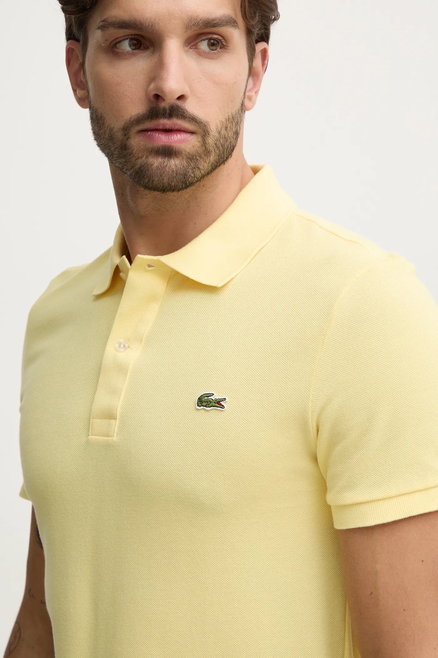 Lacoste polo bawełniane kolor żółty gładki