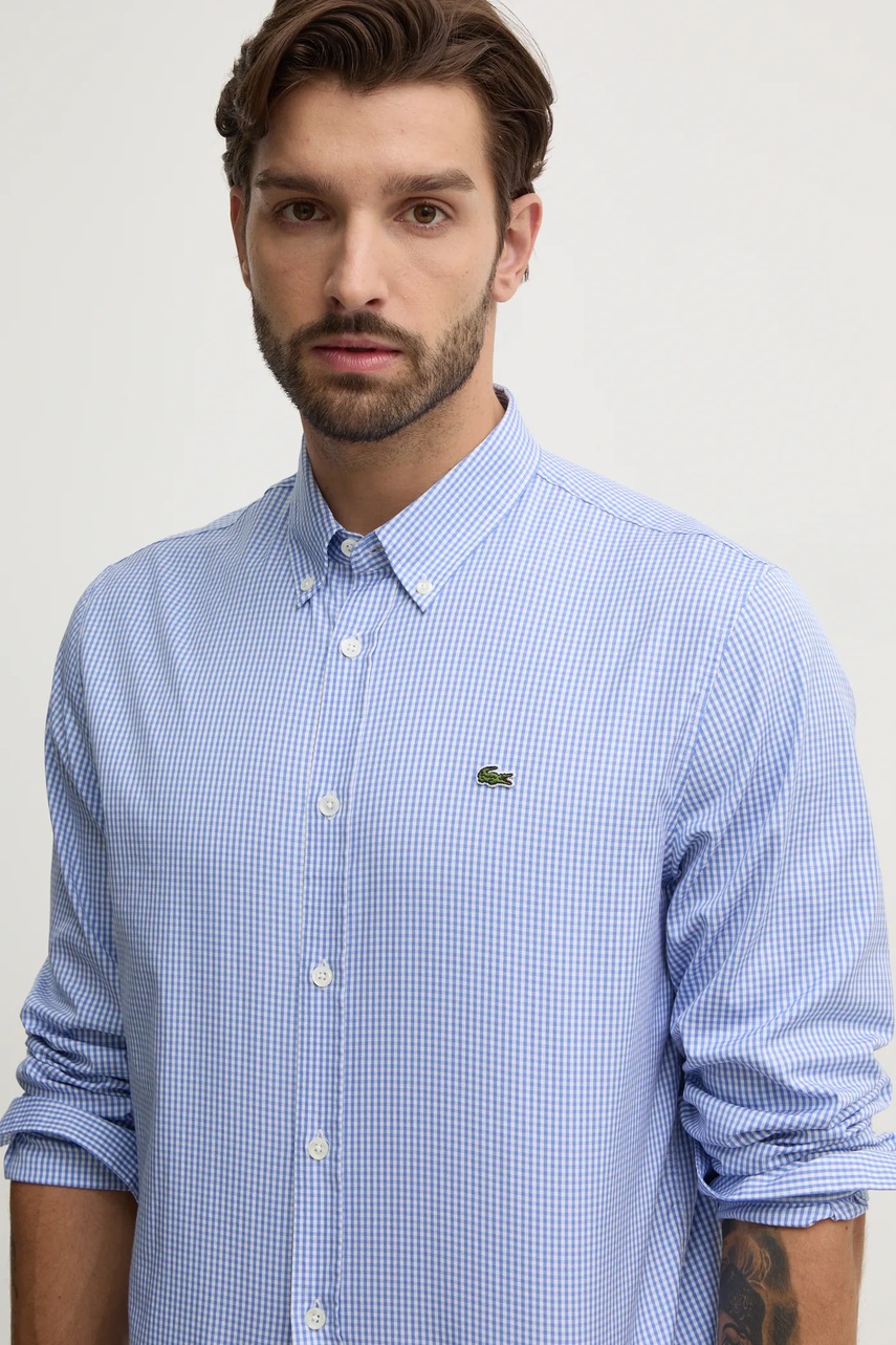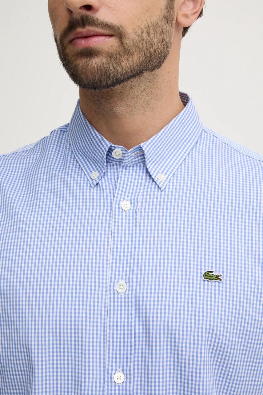Lacoste koszula bawełniana męska kolor niebieski regular z kołnierzykiem button-down