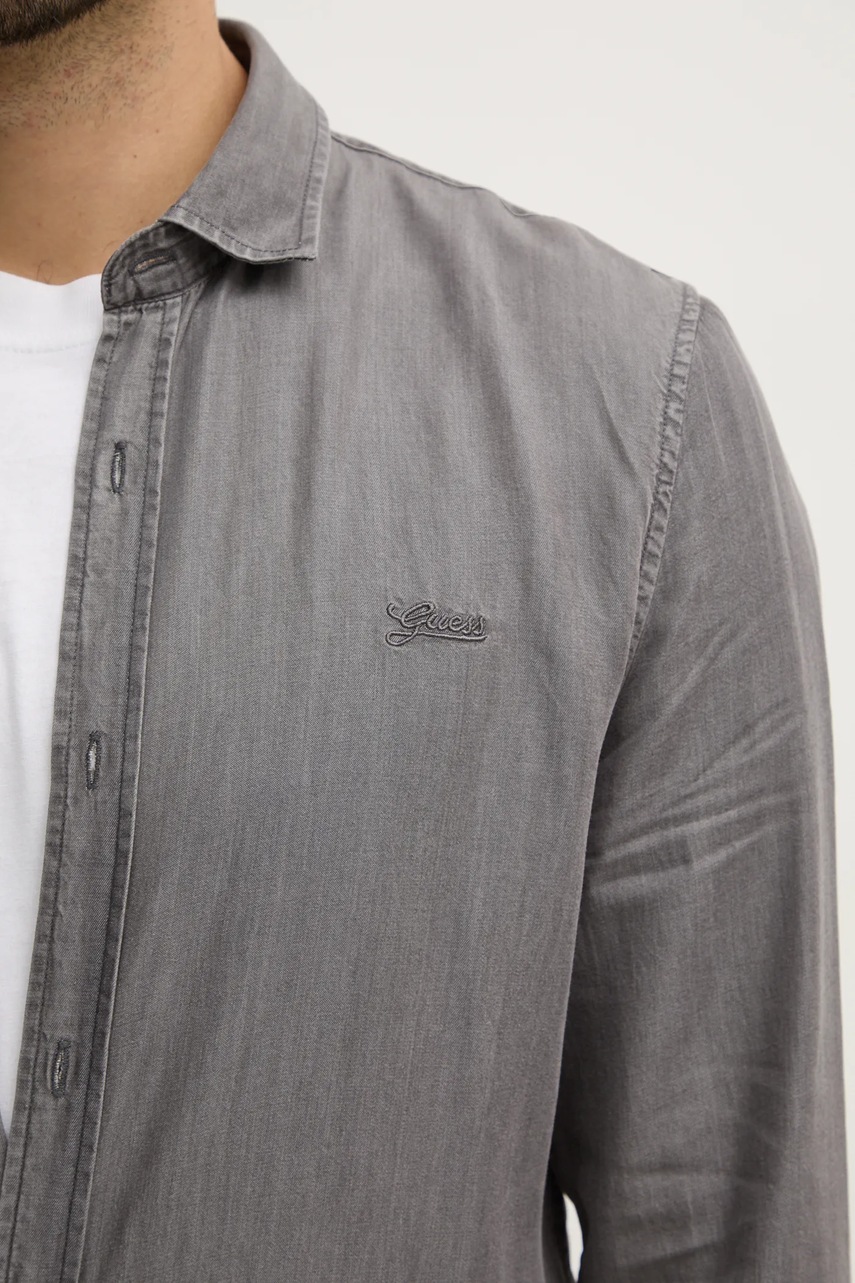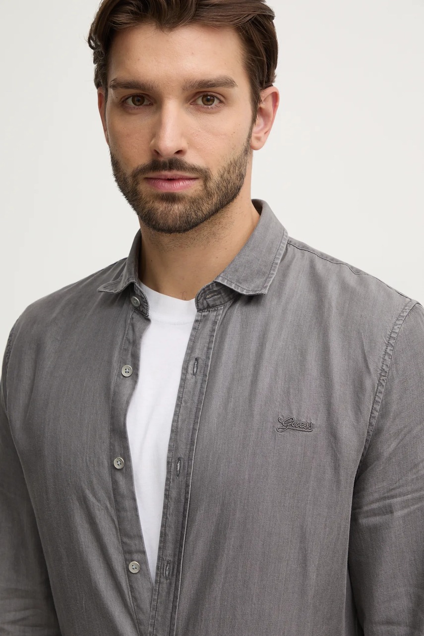 Guess koszula męska kolor szary slim z kołnierzykiem klasycznym M4RH26.WFXT0