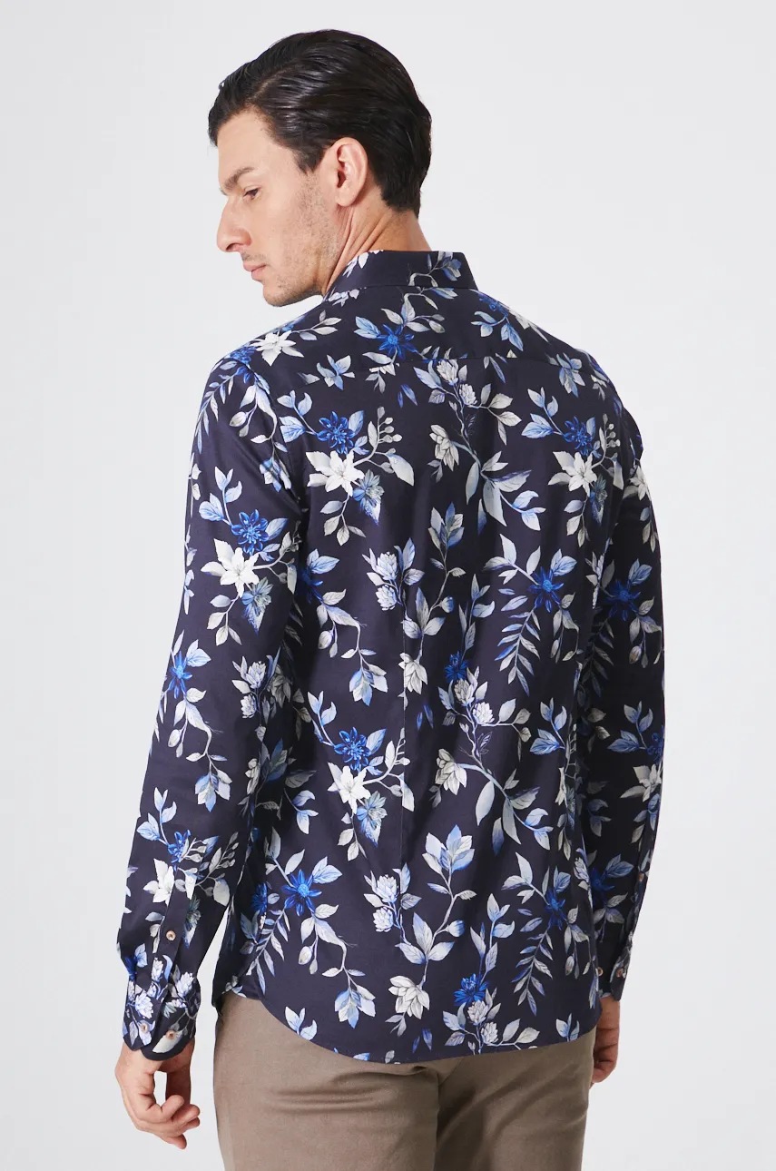 Medicine koszula męska kolor granatowy slim z kołnierzykiem klasycznym