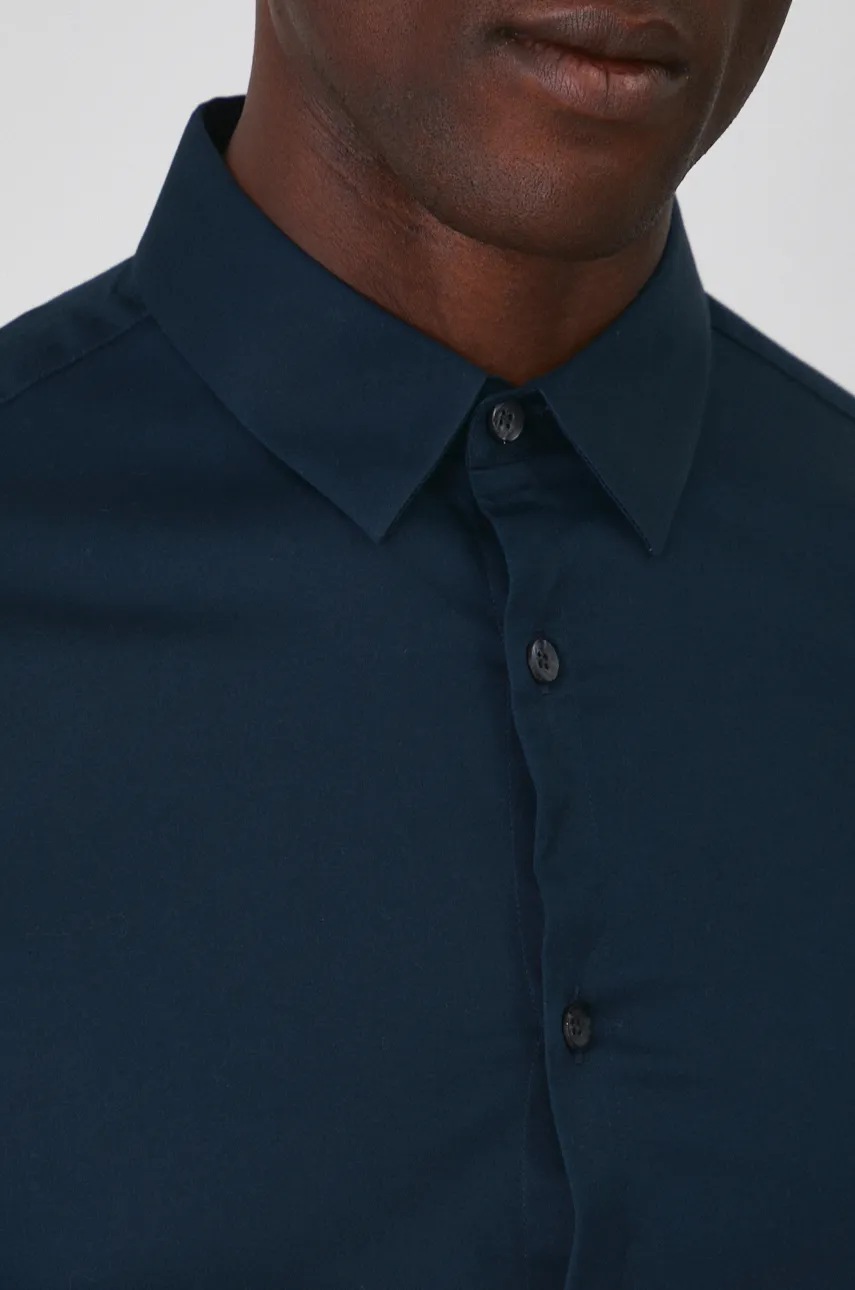 Medicine koszula męska kolor granatowy slim z kołnierzykiem klasycznym