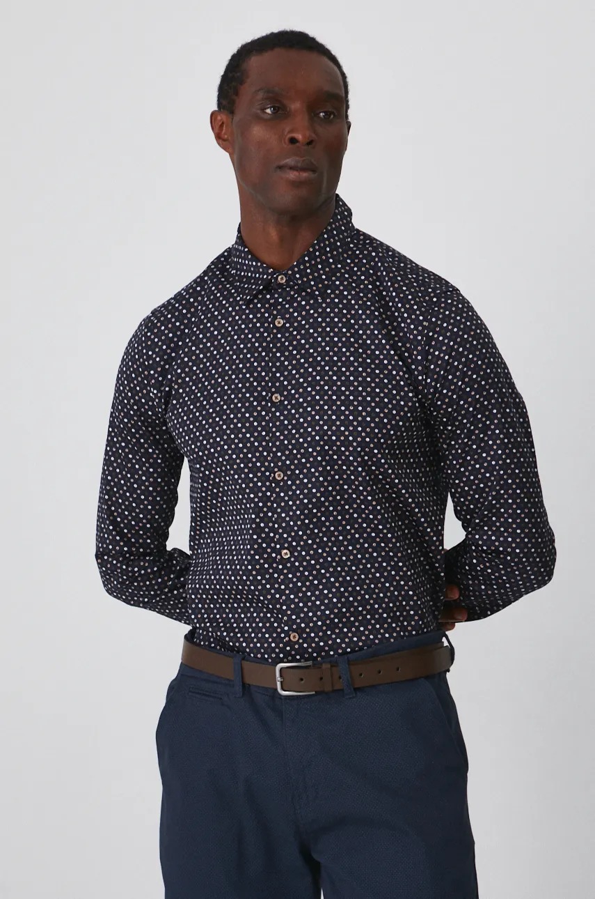 Medicine koszula męska kolor granatowy slim z kołnierzykiem klasycznym