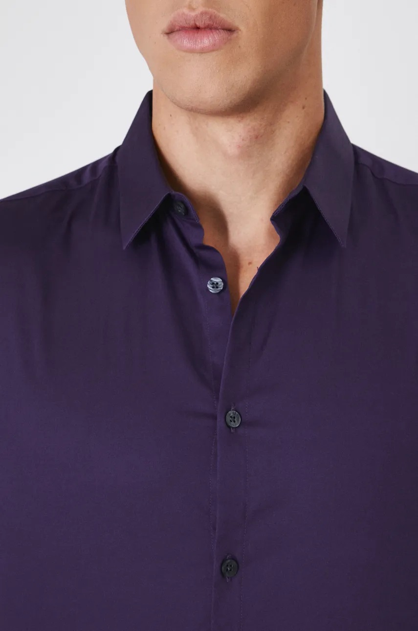 Medicine koszula męska kolor fioletowy slim z kołnierzykiem klasycznym