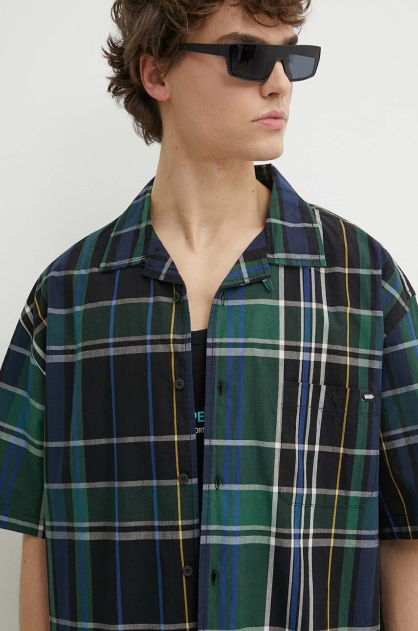 Vans koszula bawełniana męska kolor granatowy relaxed z kołnierzykiem klasycznym VN0007XABVA1