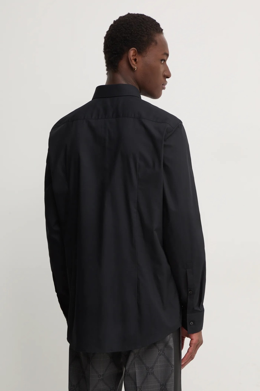 HUGO koszula bawełniana męska kolor czarny slim z kołnierzykiem klasycznym 50524849