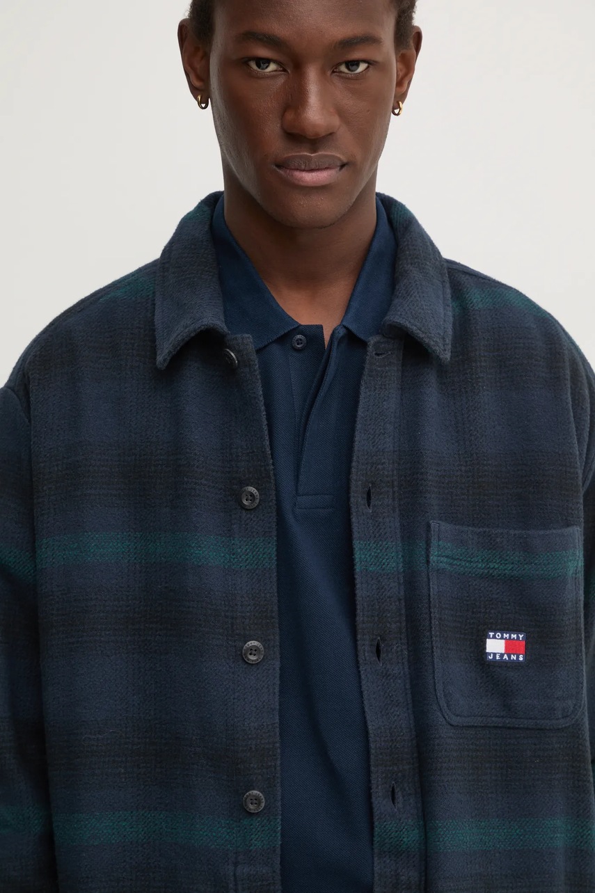 Tommy Jeans koszula bawełniana męska kolor granatowy relaxed z kołnierzykiem klasycznym DM0DM19657