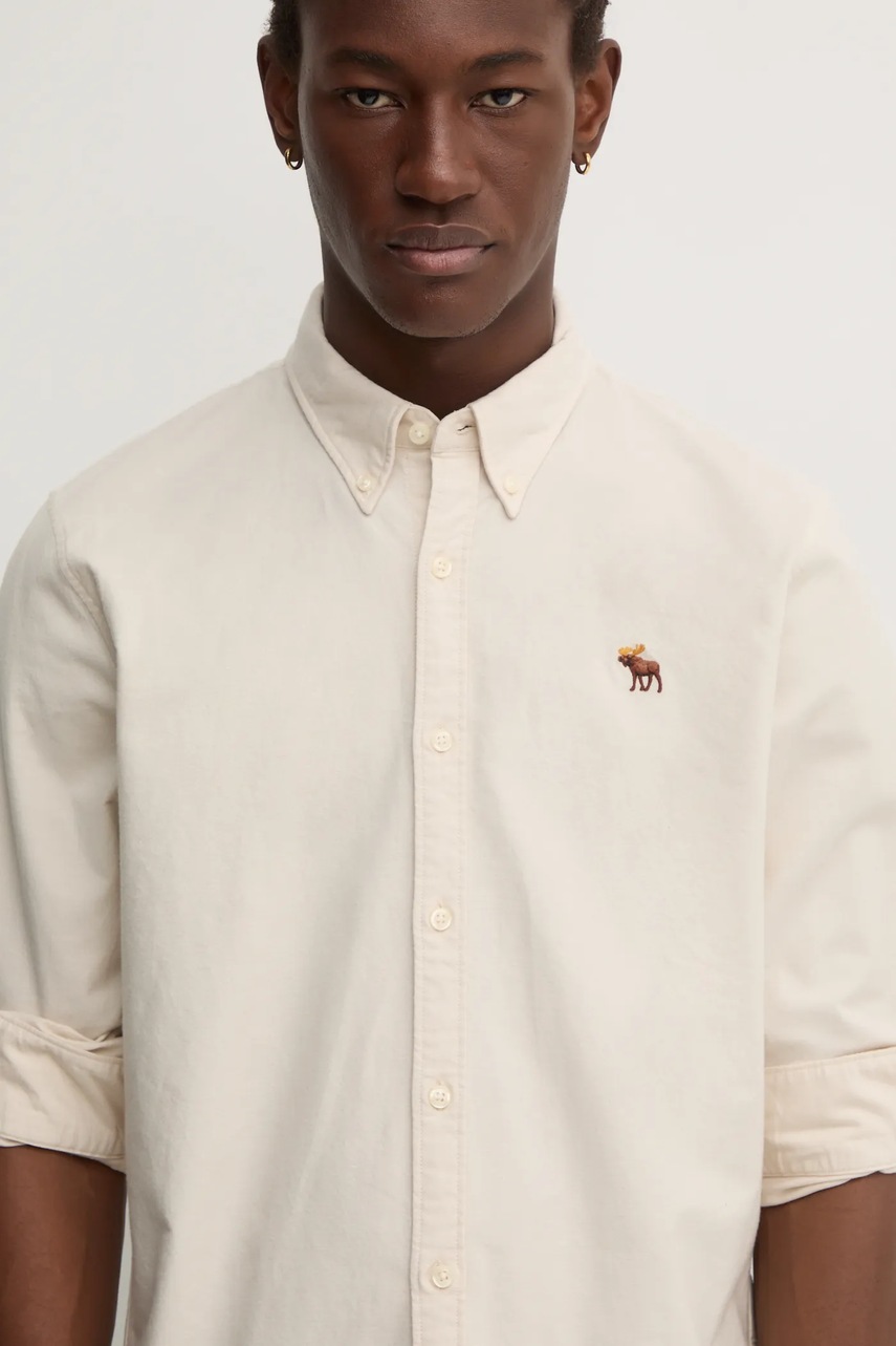 Abercrombie & Fitch koszula męska kolor beżowy regular z kołnierzykiem button-down KI125-4185