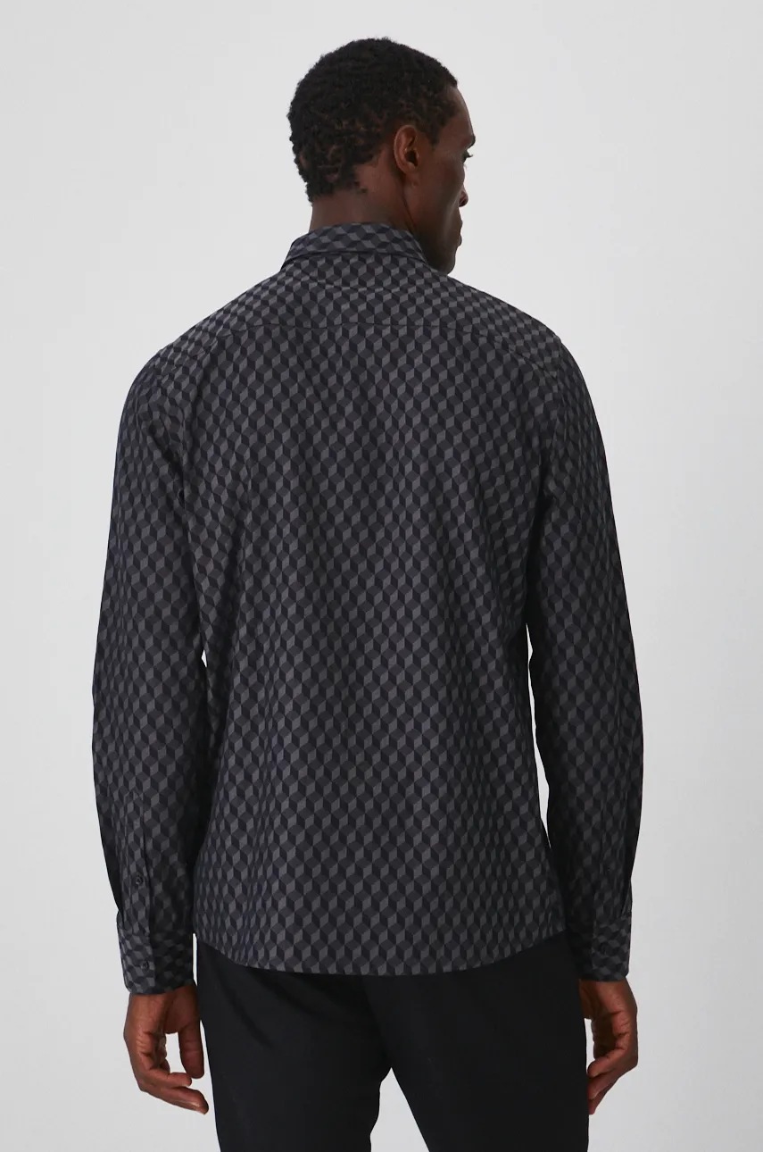 - Koszula w fasonie regular delikatnie dopasowuje się do sylwetki, ale nie podkreśla jej nadmiernie, zapewniając swobodę ruchów.