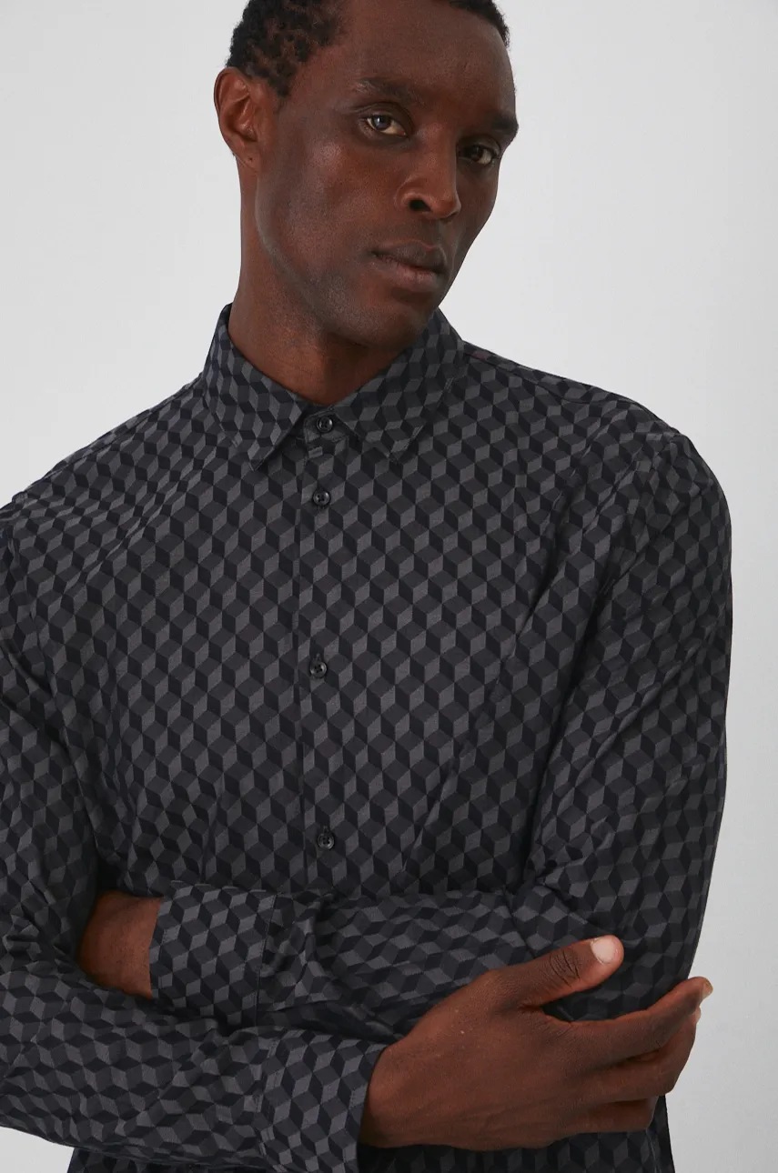 Medicine koszula męska kolor czarny regular z kołnierzykiem klasycznym