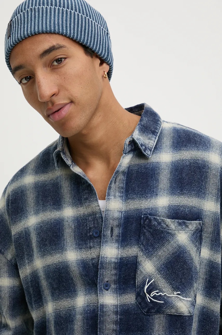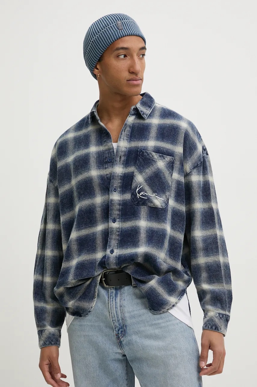 Karl Kani koszula bawełniana męska kolor granatowy relaxed z kołnierzykiem klasycznym 60230006