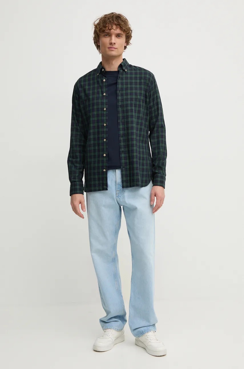 Hackett London koszula bawełniana męska kolor granatowy regular z kołnierzykiem button-down HM3010048
