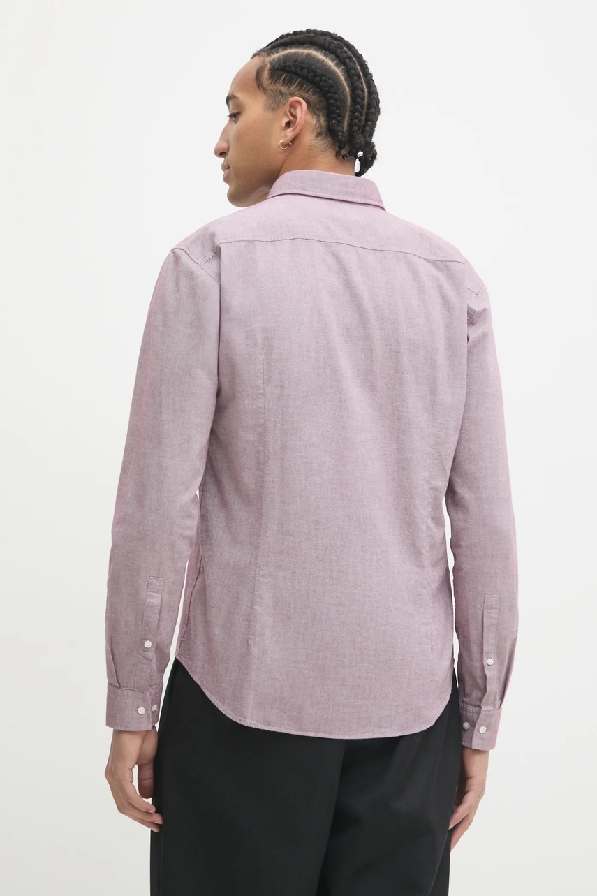 HUGO koszula bawełniana męska kolor różowy slim z kołnierzykiem button-down