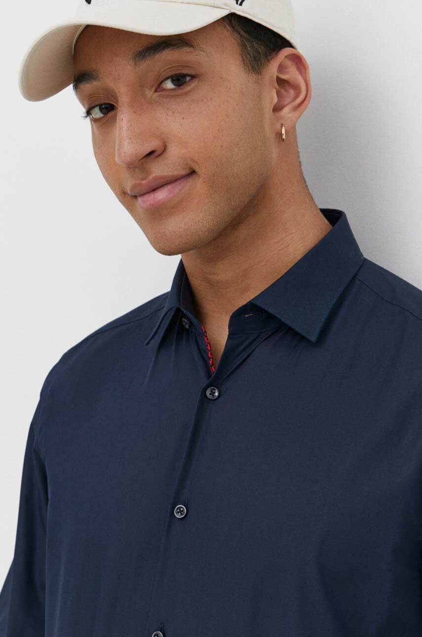 HUGO koszula bawełniana męska kolor granatowy slim z kołnierzykiem klasycznym 50513932