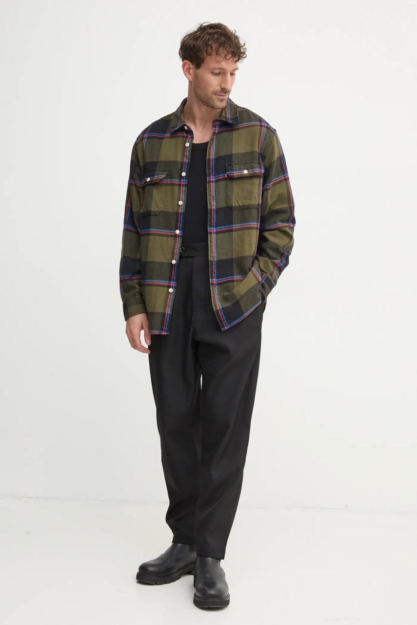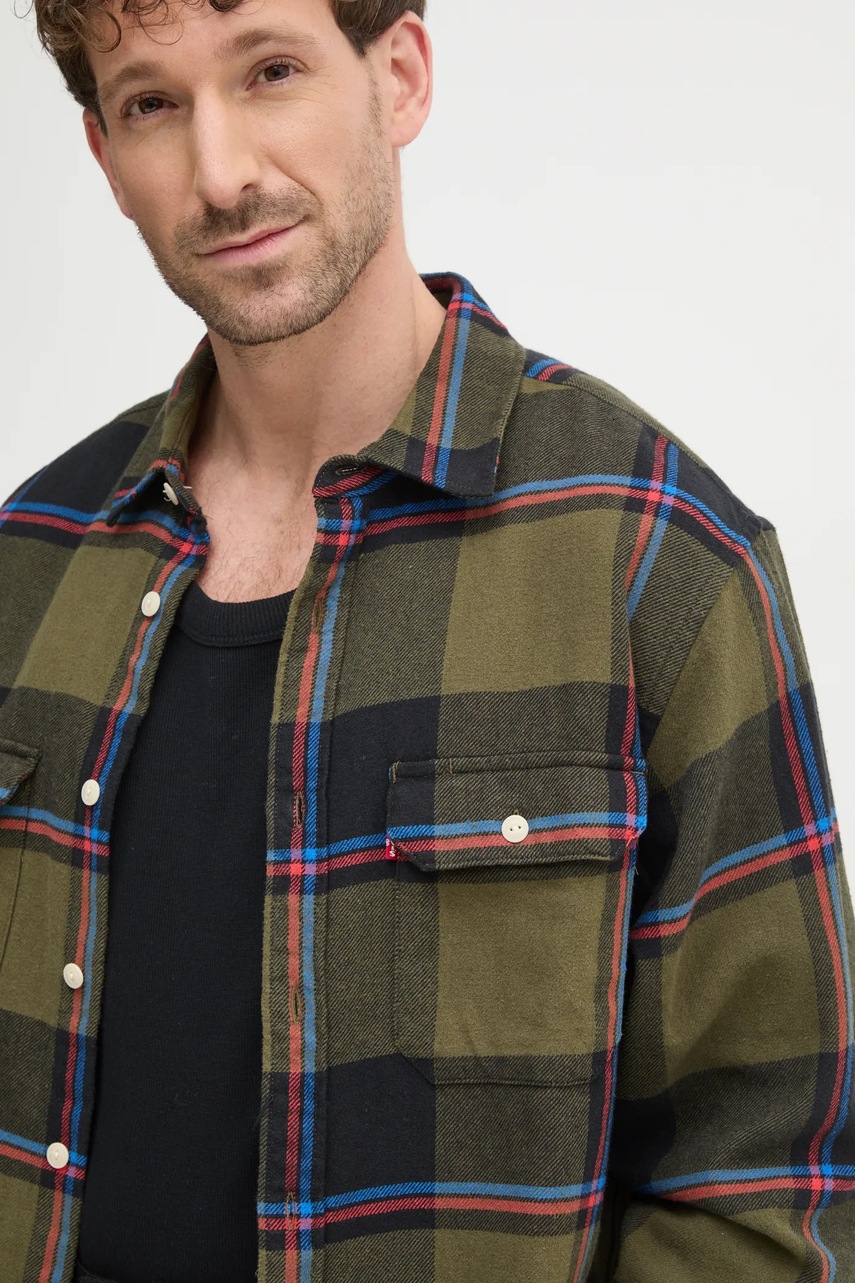 Levi's koszula bawełniana męska kolor zielony relaxed z kołnierzykiem klasycznym