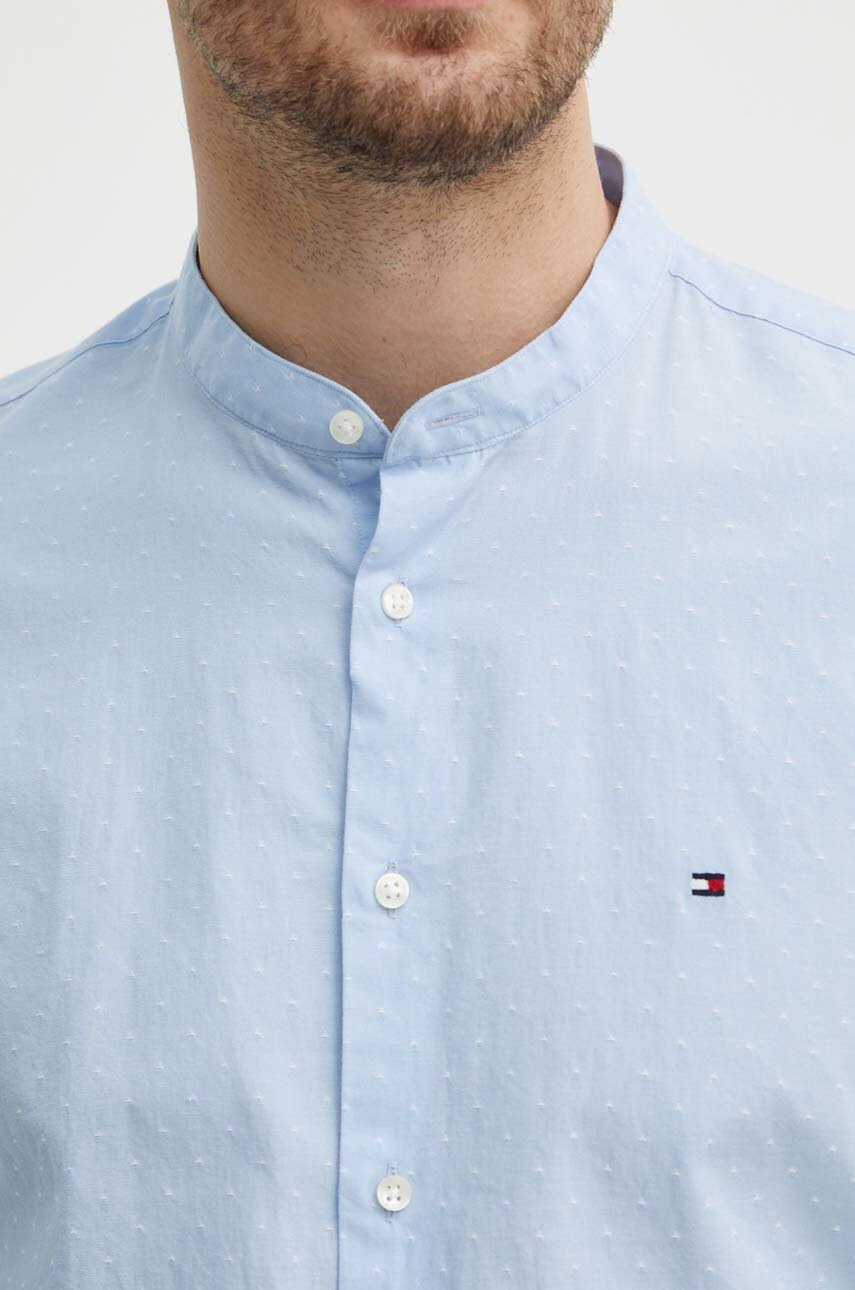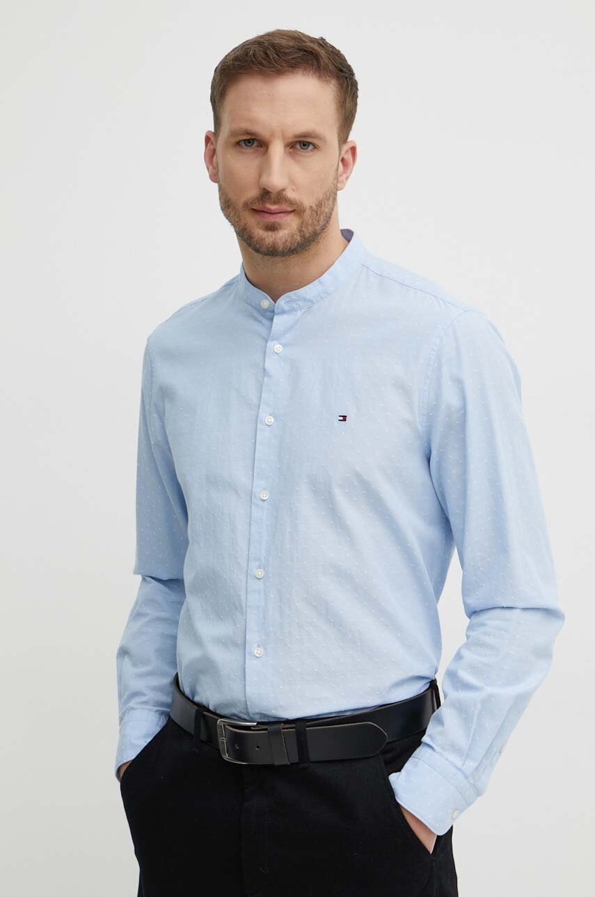 Tommy Hilfiger koszula bawełniana męska kolor niebieski slim ze stójką MW0MW34650