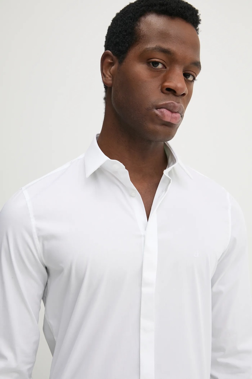 Calvin Klein koszula męska kolor biały slim z kołnierzykiem klasycznym K10K109891