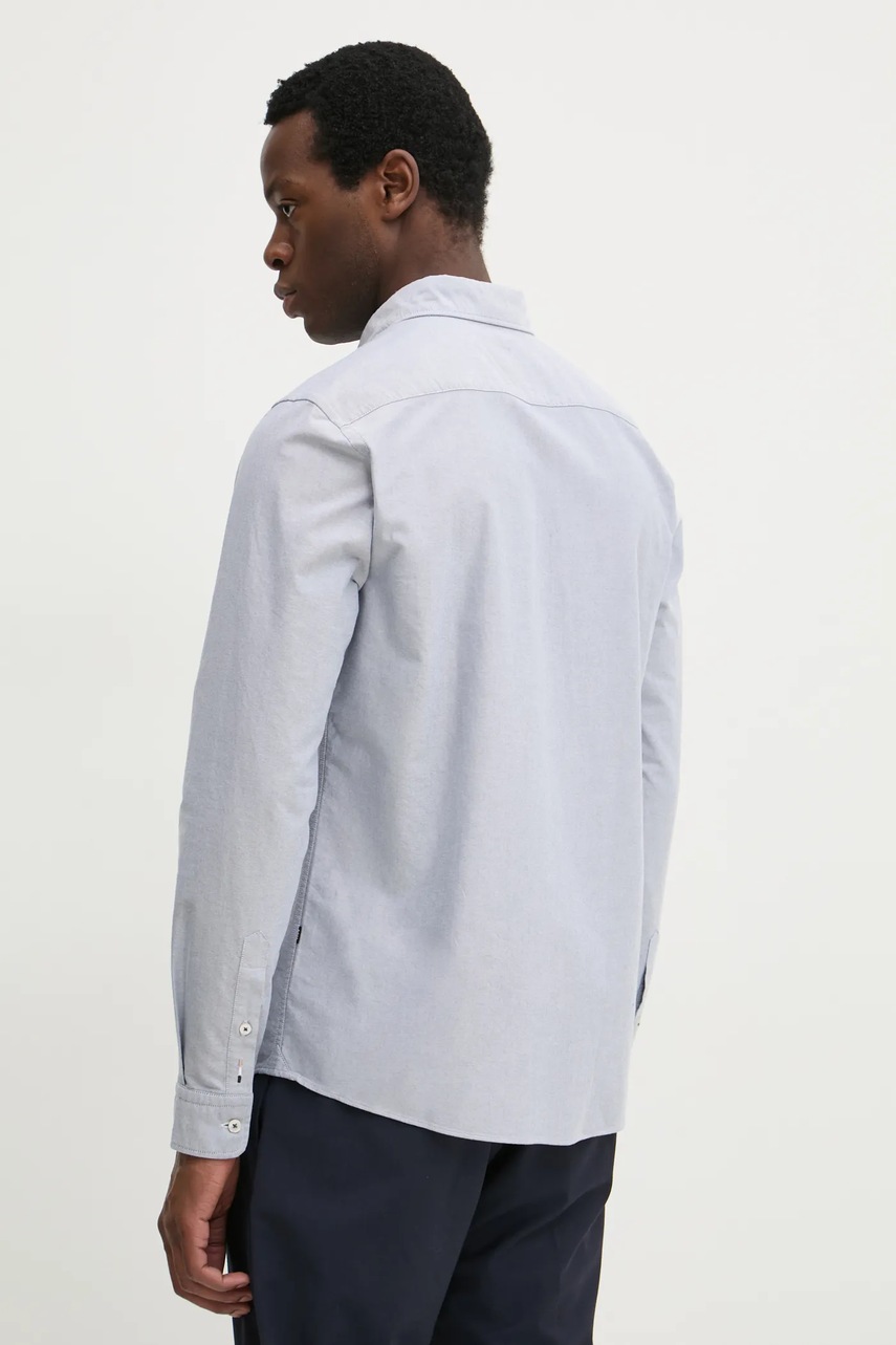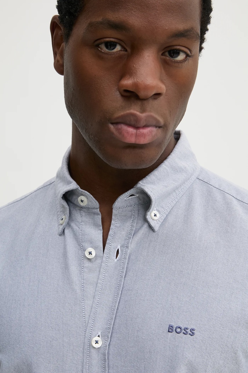 BOSS koszula bawełniana męska kolor szary slim z kołnierzykiem button-down 50520265