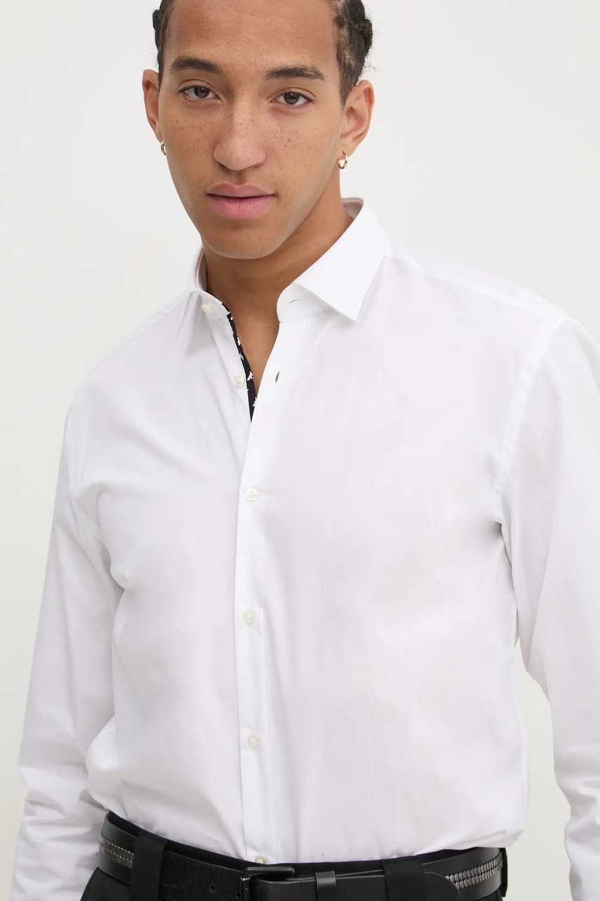 HUGO koszula bawełniana męska kolor biały slim z kołnierzykiem klasycznym 50534044