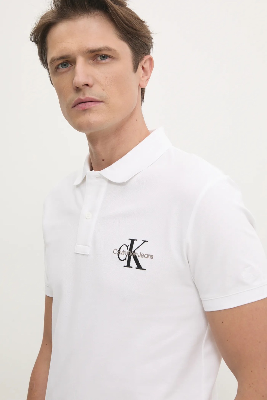 Calvin Klein Jeans polo męski kolor biały z aplikacją J30J325664