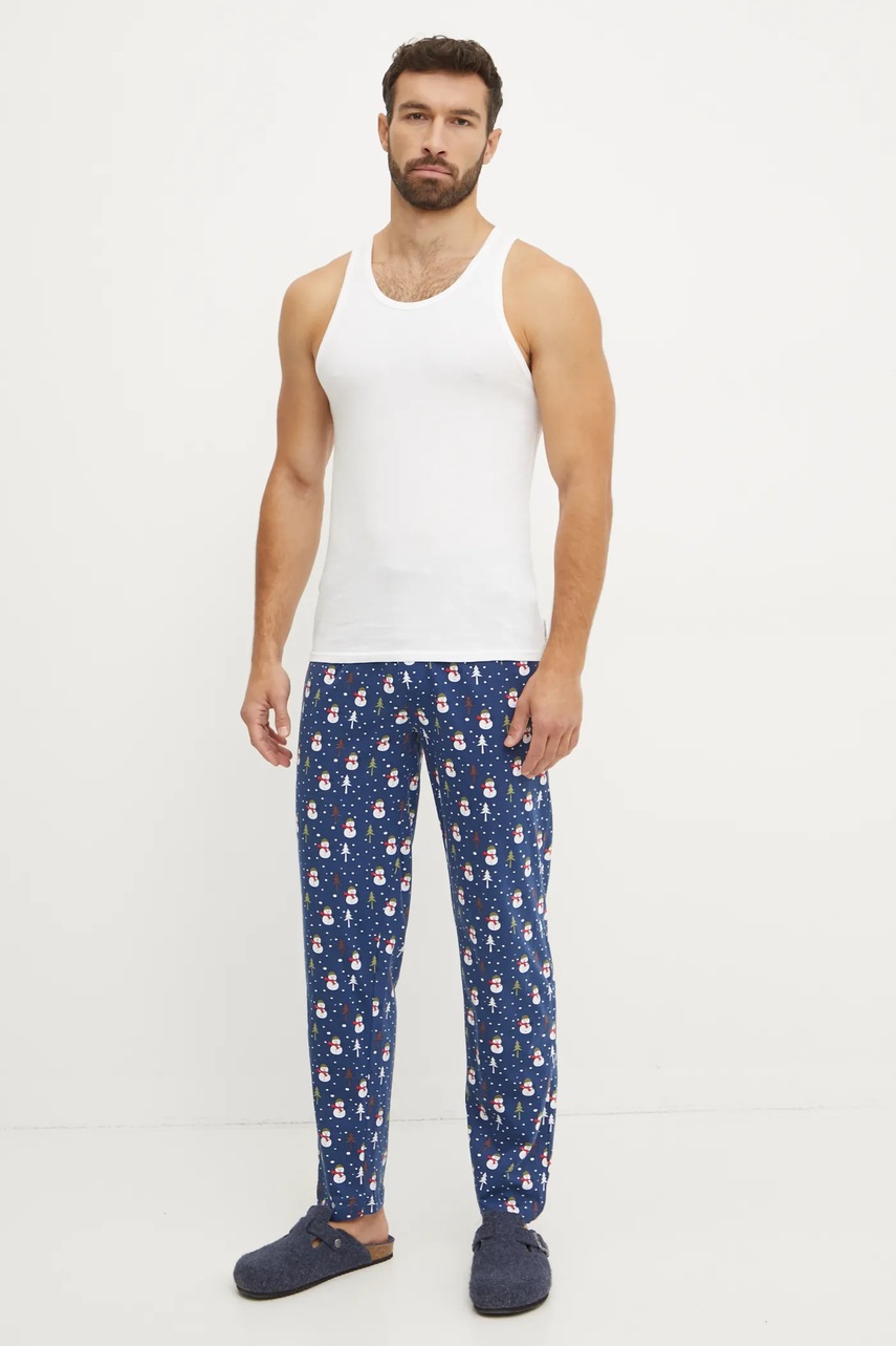 Lindbergh spodnie piżamowe bawełniane kolor granatowy wzorzysta 30-997524
