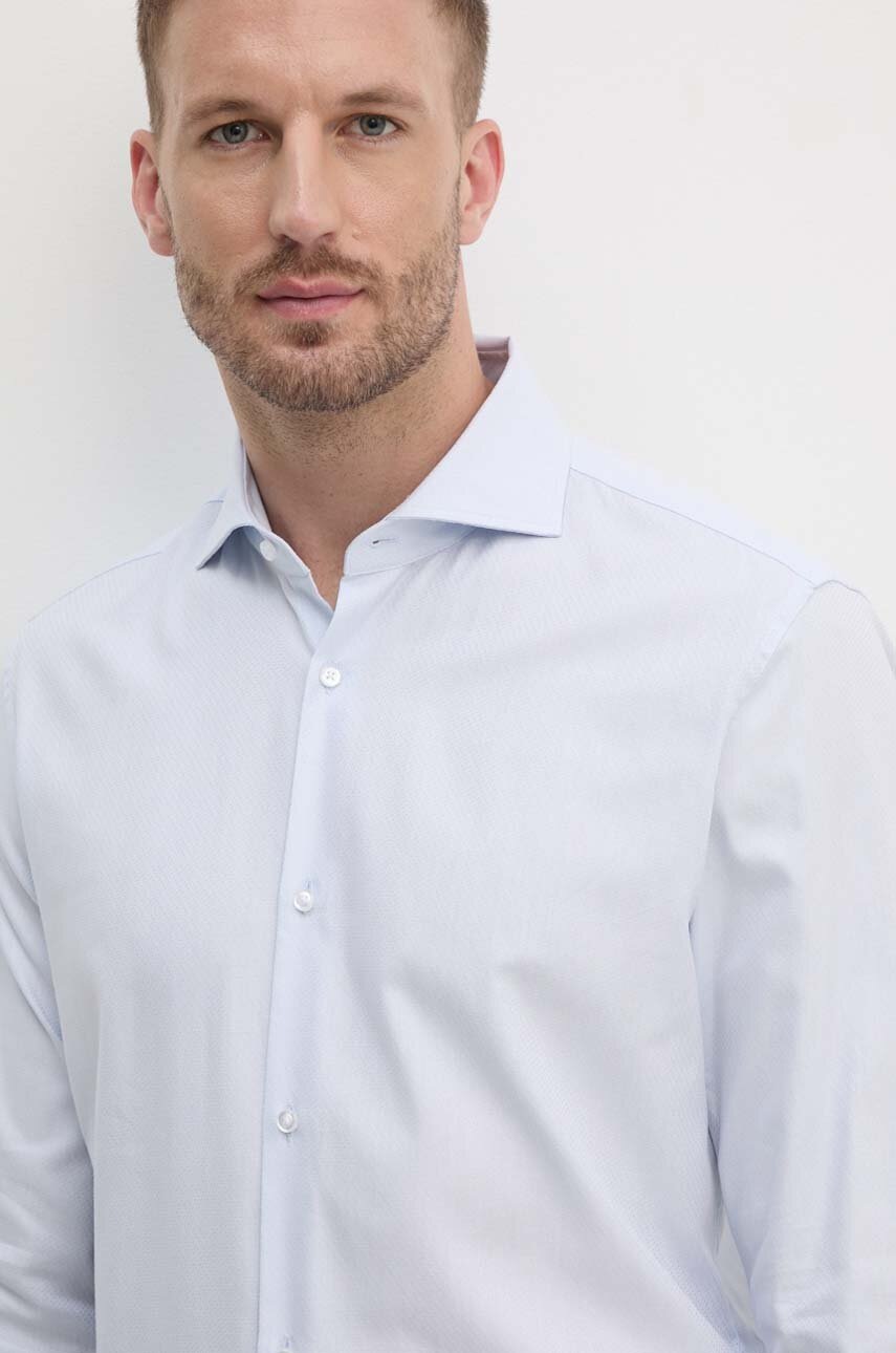Joop! koszula bawełniana męska kolor niebieski slim z kołnierzykiem włoskim 30043593