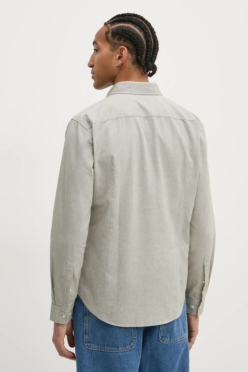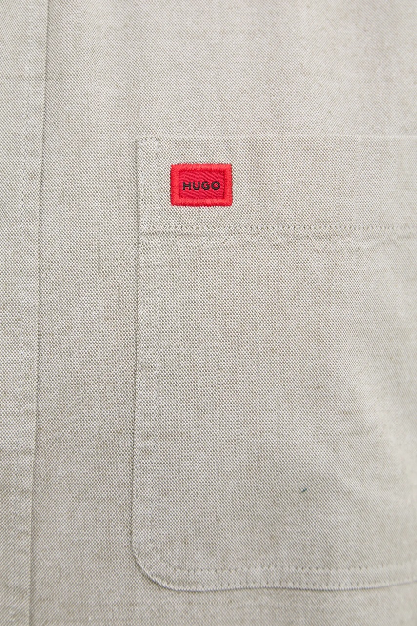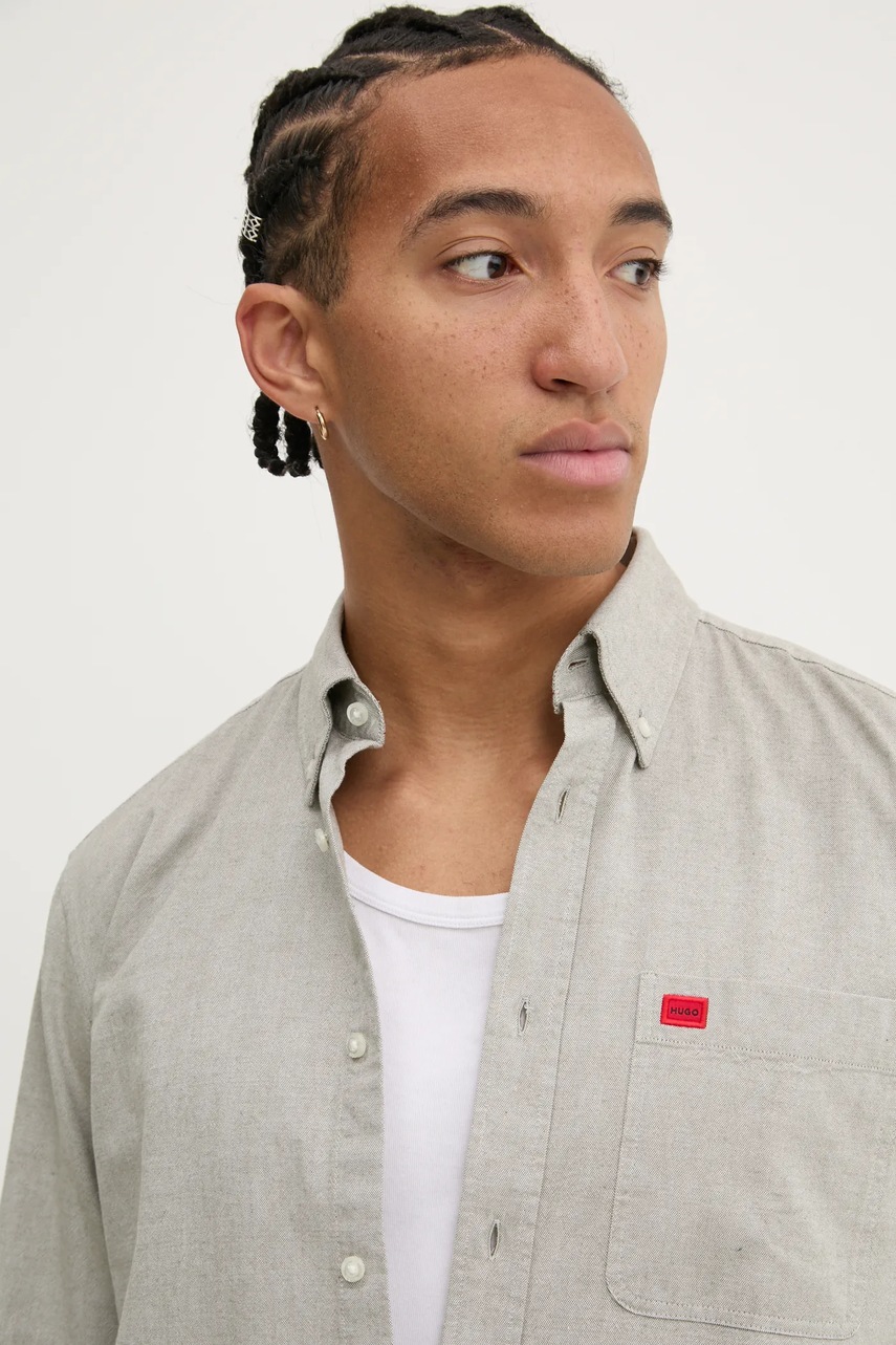 HUGO koszula bawełniana męska kolor szary slim z kołnierzykiem button-down