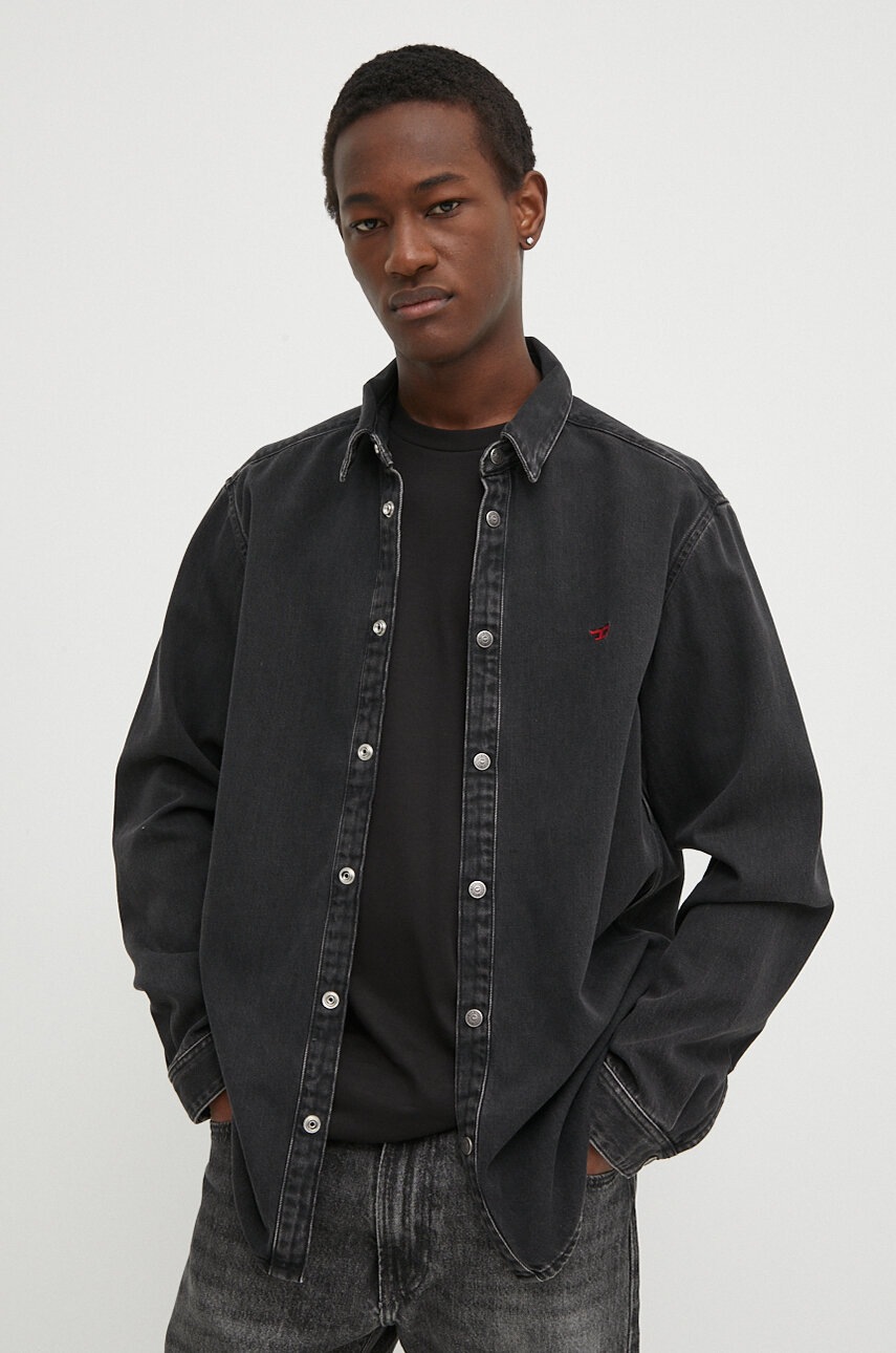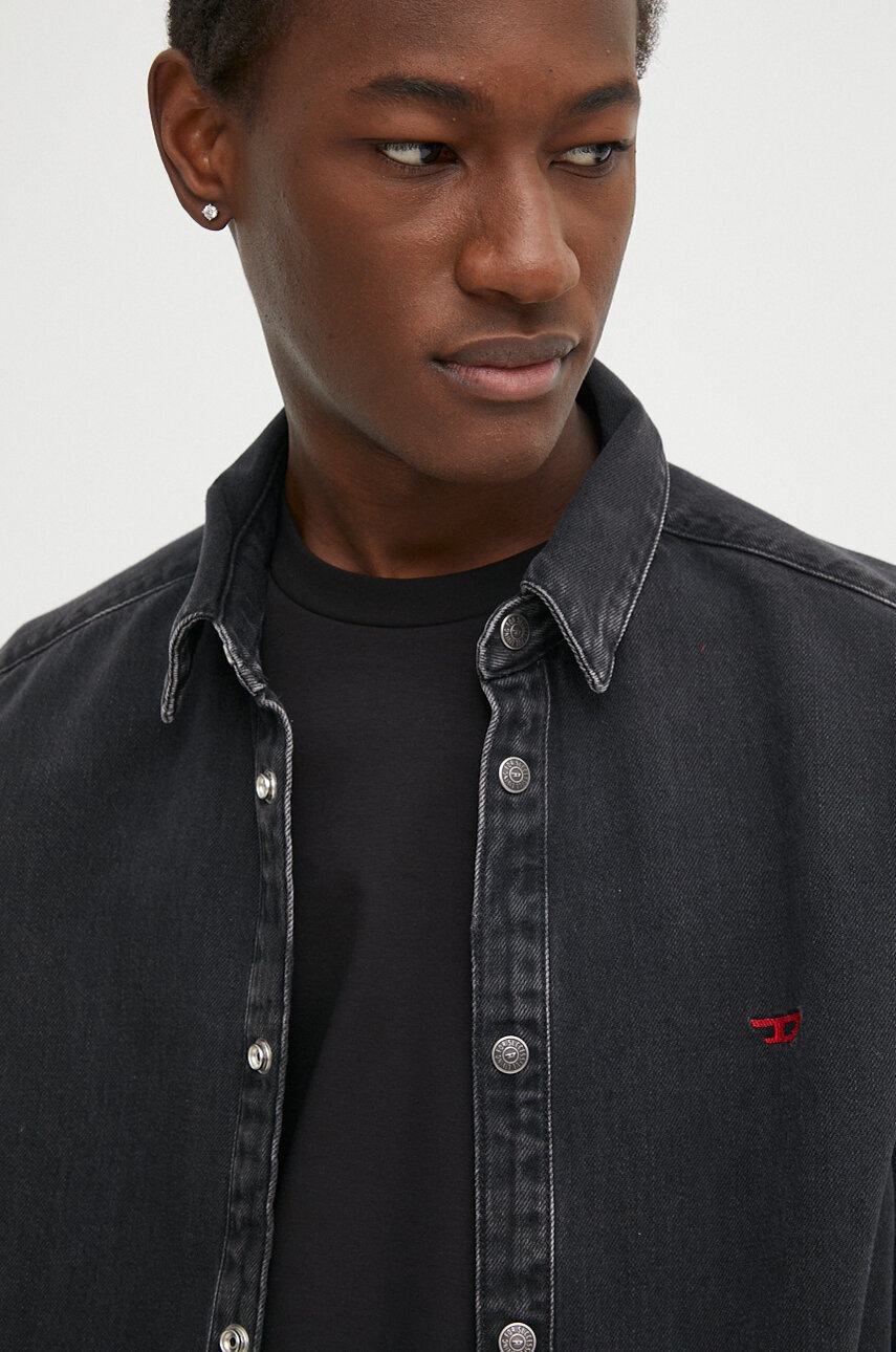 Diesel koszula jeansowa D-SIMPLY CAMICIA męska kolor czarny regular z kołnierzykiem klasycznym A03534.068KE